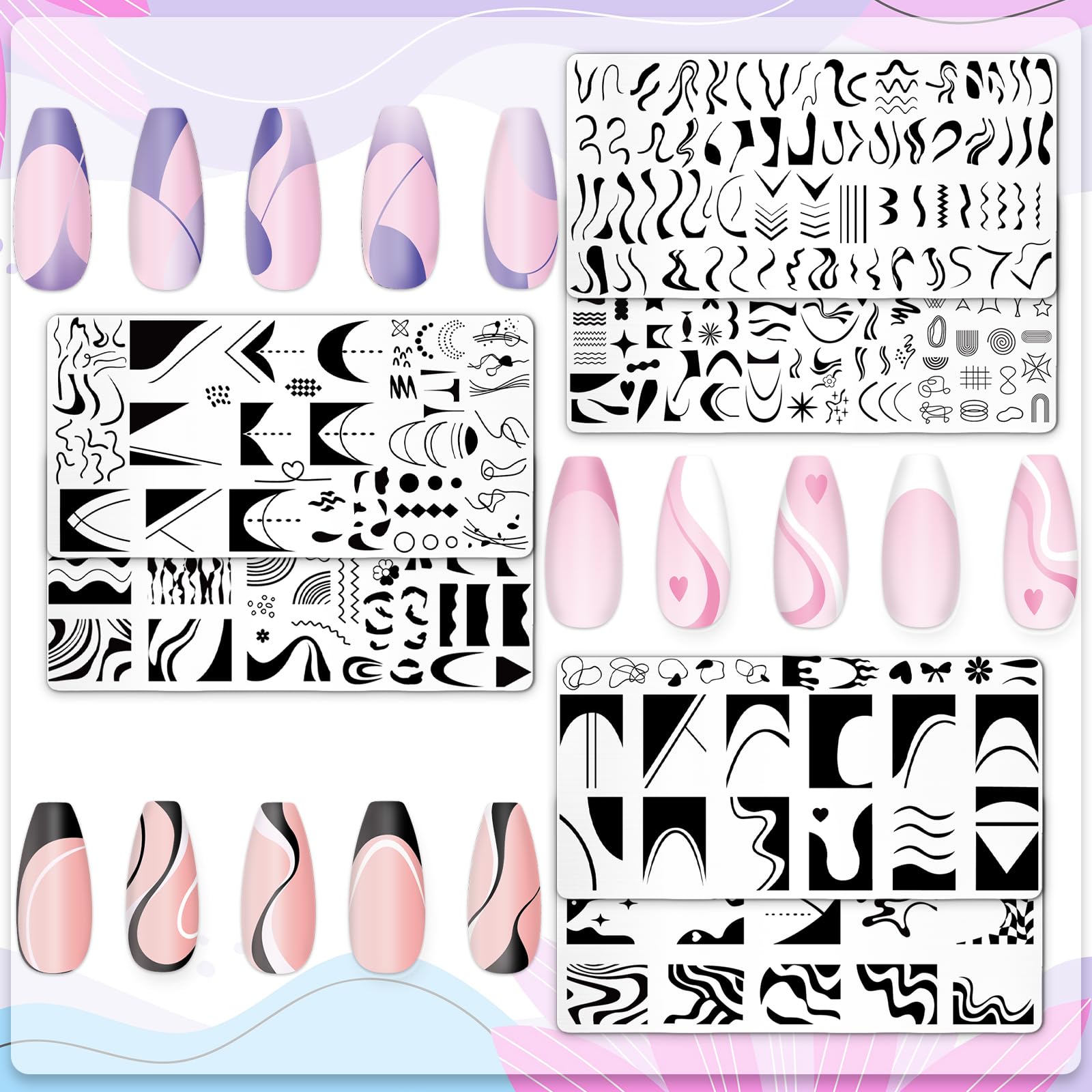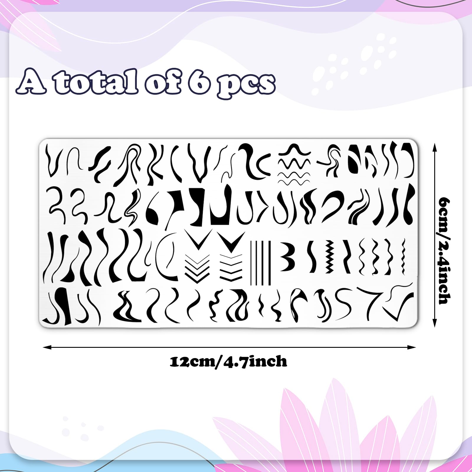 Whaline 6Pcs French Line Nail Plates Stamping Set Minimalism Wave Stripe Stamp Templates Nail Art Plates For DIY Print Manicure Salon Design