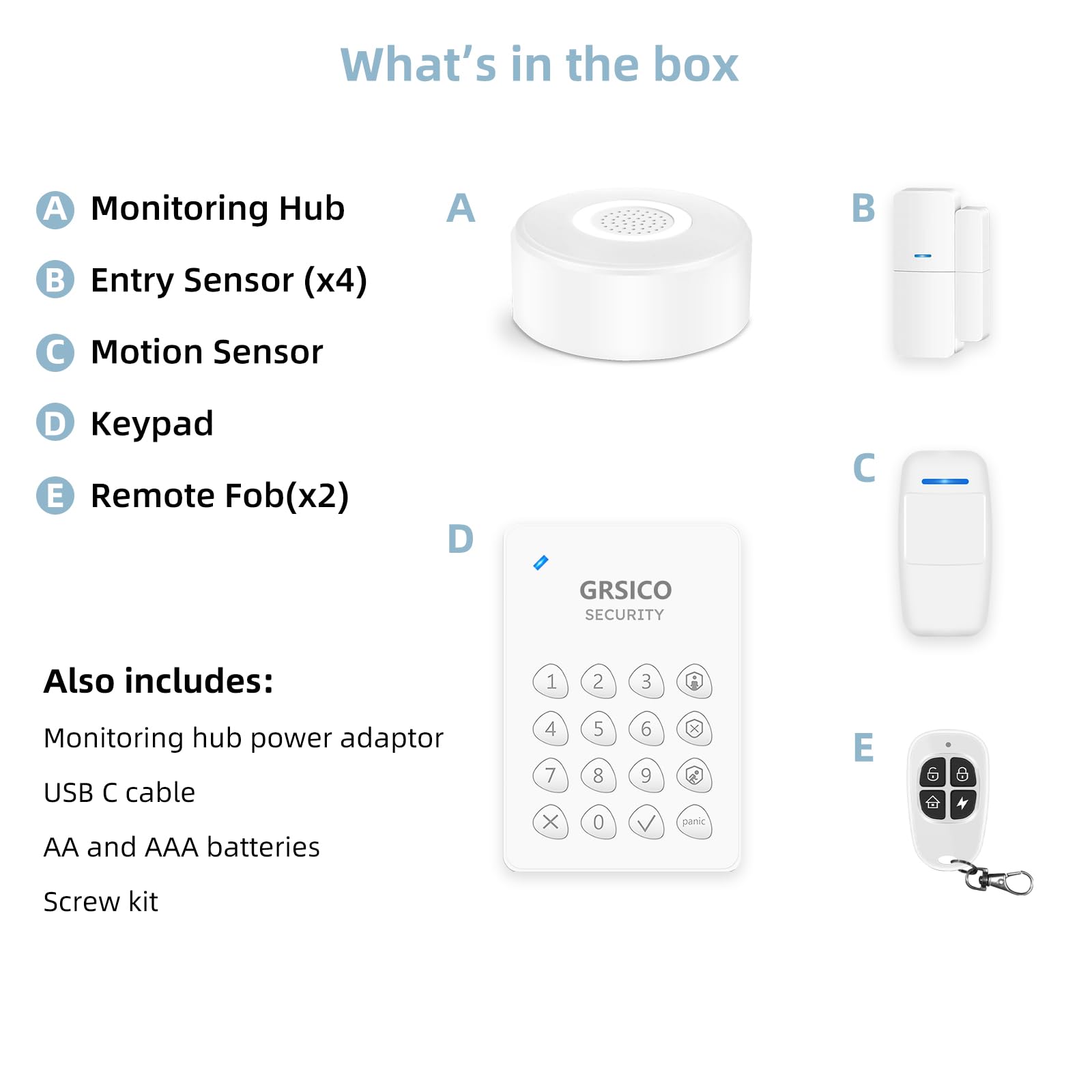 - GRSICO HOME ALARM SYSTEM WIRELESS: A great do-it-yourself home alarm system fit to protect your house. The smart WiFi house alarm system 9-piece kit includes 1 alarm station, 4 door & window sensors, 1 motion detector, 1 keypad and 2 remote controls.