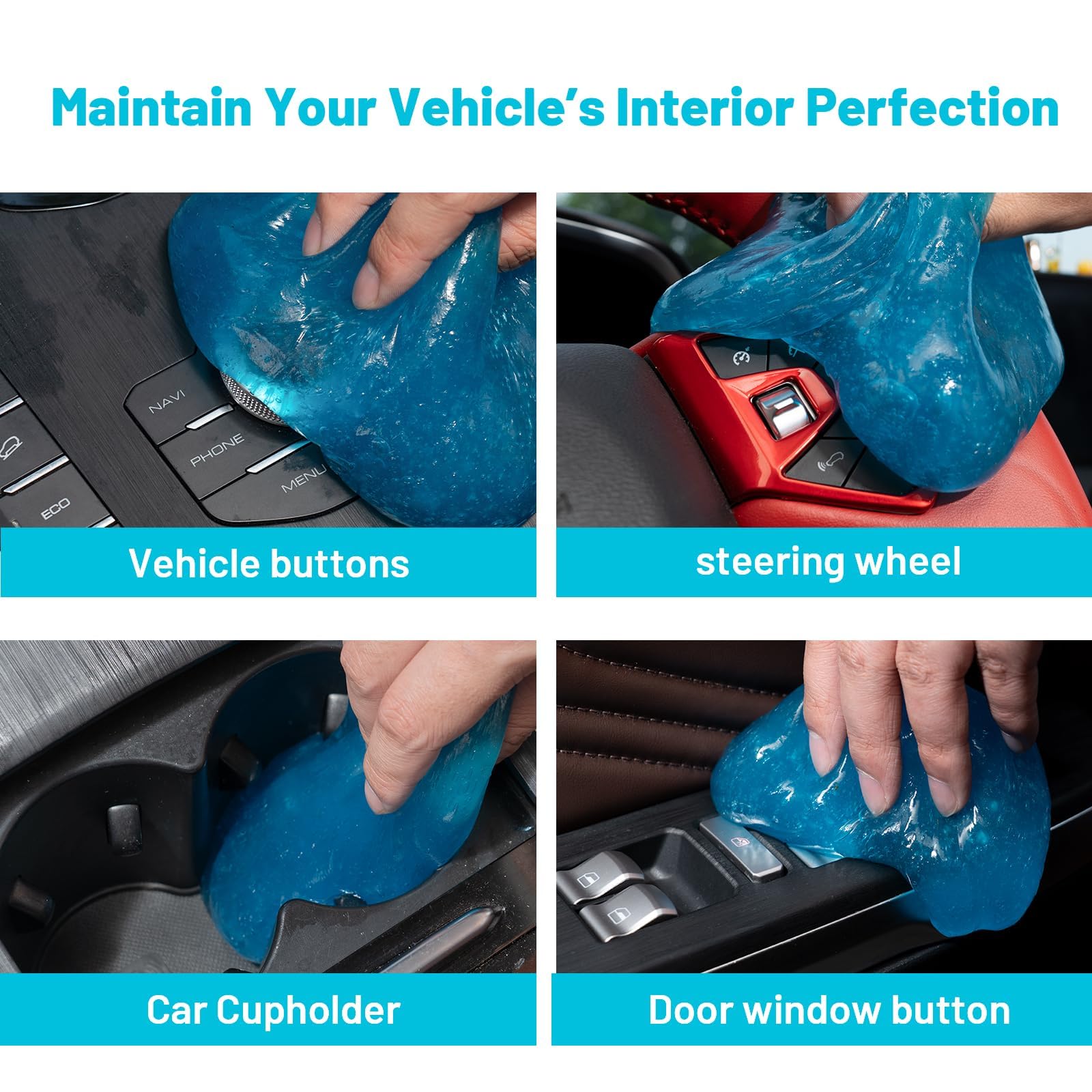 - 【PERFECT CAR CLEANING TOOL】Car cleaning gel for car interior is a perfect car cleaning tools to help you effortlessly clean the hardest to reach little places in your car.This versatile car putty easily penetrates into the tiniest of crevices sucks up stubborn dust, debris and pet hair.With its superior cleaning power, it ensures a thorough clean without leaving any residue behind, It is an indispensable car detailing supplies for all your car cleaning needs