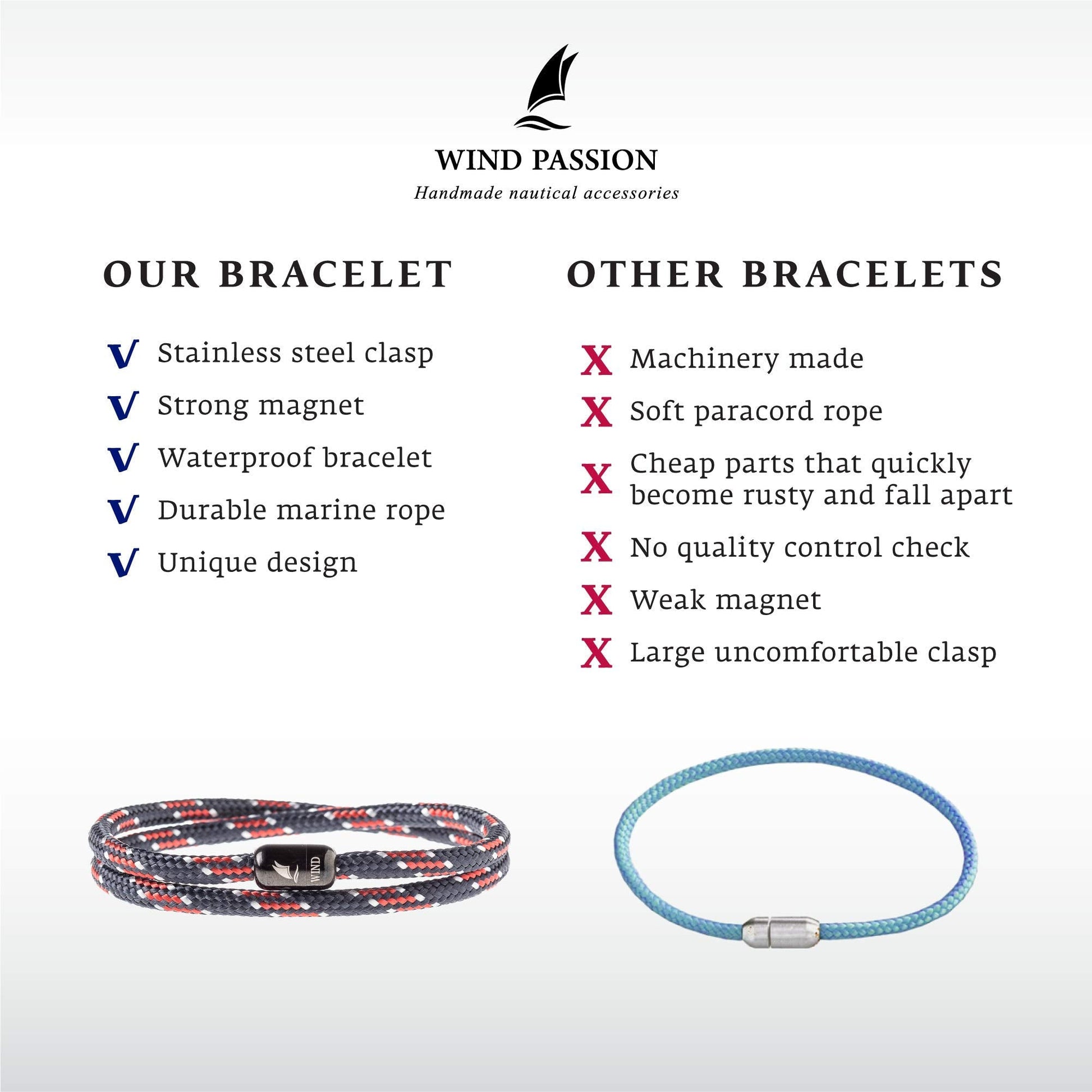 Wind Passion - Paracord Mens Bracelet - Bracelet for Women - Rope Bracelet String With Magnetic Clasp - Wrist Surfer Bracelet - Handmade Surfer Magnetic Bracelets - Sturdy & Waterproof