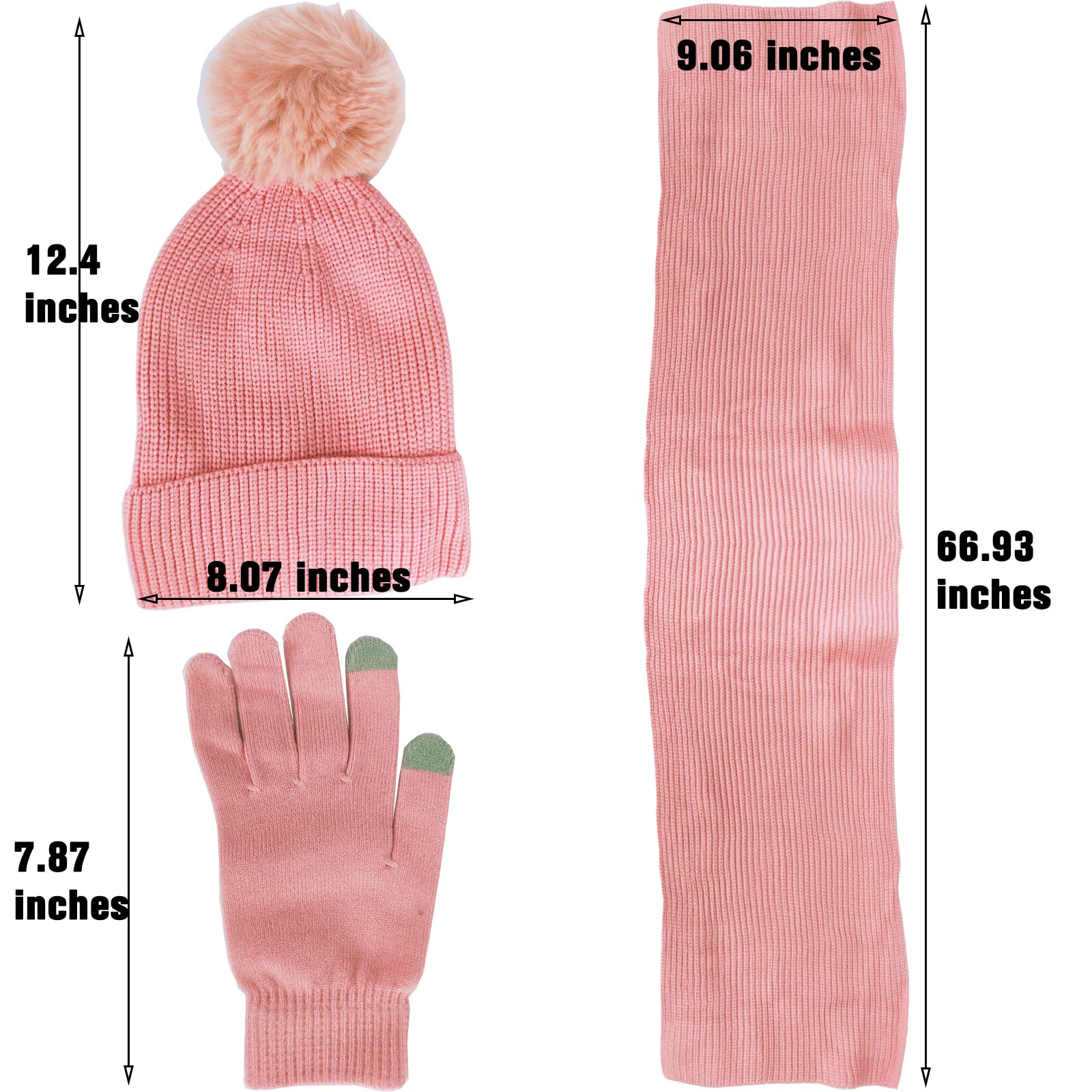 Winter Beanie Hat Scarf and Gloves Set for Women Girls, Soft Warm Thick Fleece Lined Knit Hat with Pompom, Winter Gloves and Scarf for Girls