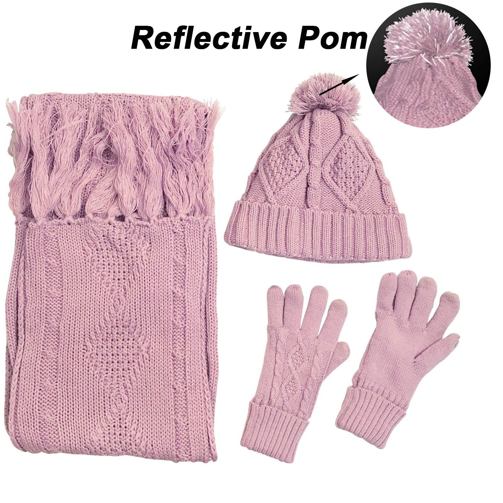 Winter Hat Gloves Scarf Set for Women, Cable Knit Beanie Pom Cap Touch Screen Glove Long Scarf 3PCS Winter Gift for Women Men