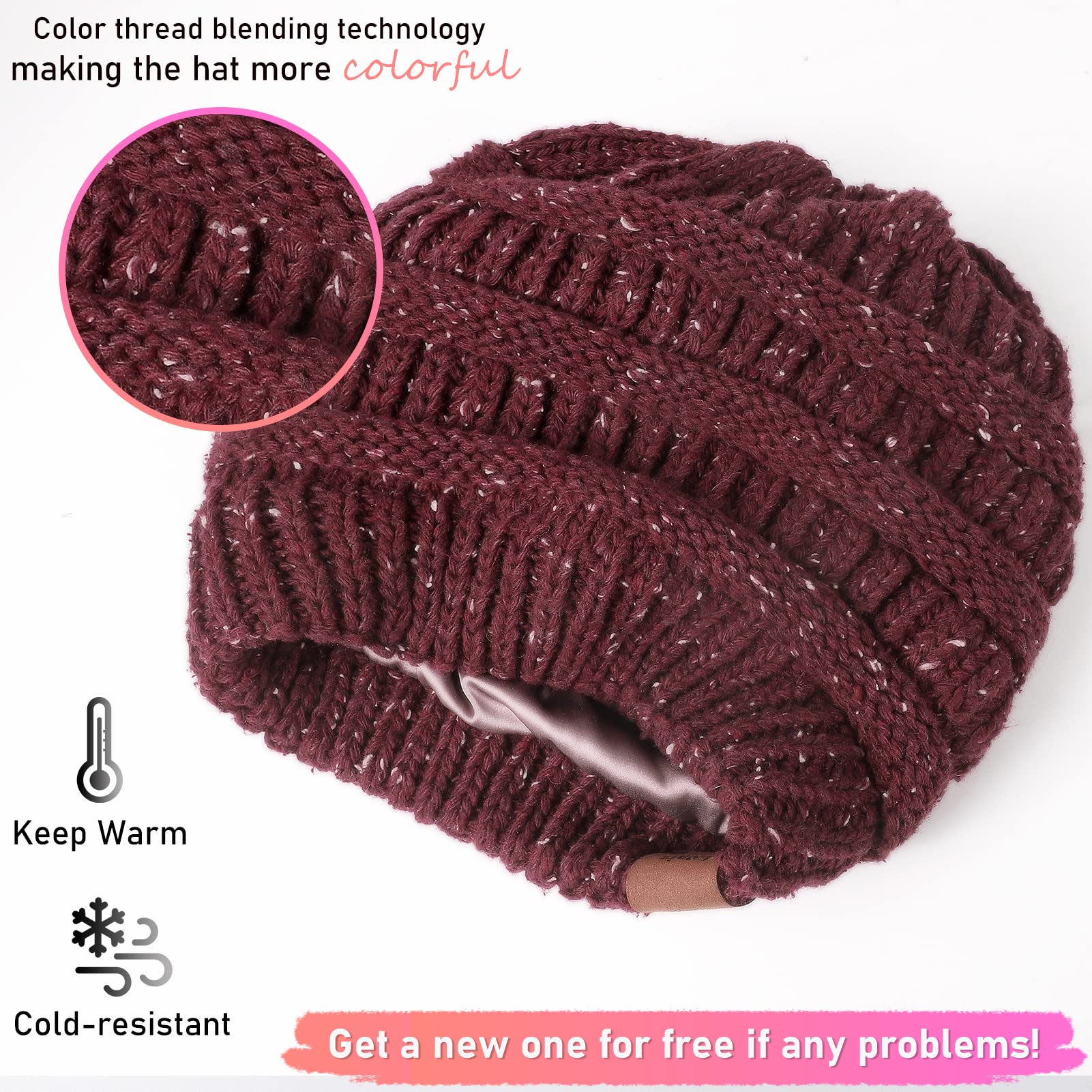- Unique Design With Satin Lining: The cold, dry winter air can cause our hair to dry out and split ends. Satined lined beanie for women has excellent protection, beanies for winter effectively prevents moisture evaporation and protects our hair from dry split ends. women Knit hats with satin lining is soft and delicate, making it easier to wear and better hold your hairstyle. You no longer have to worry about your hair getting messy after taking off the satin lined winter hat.