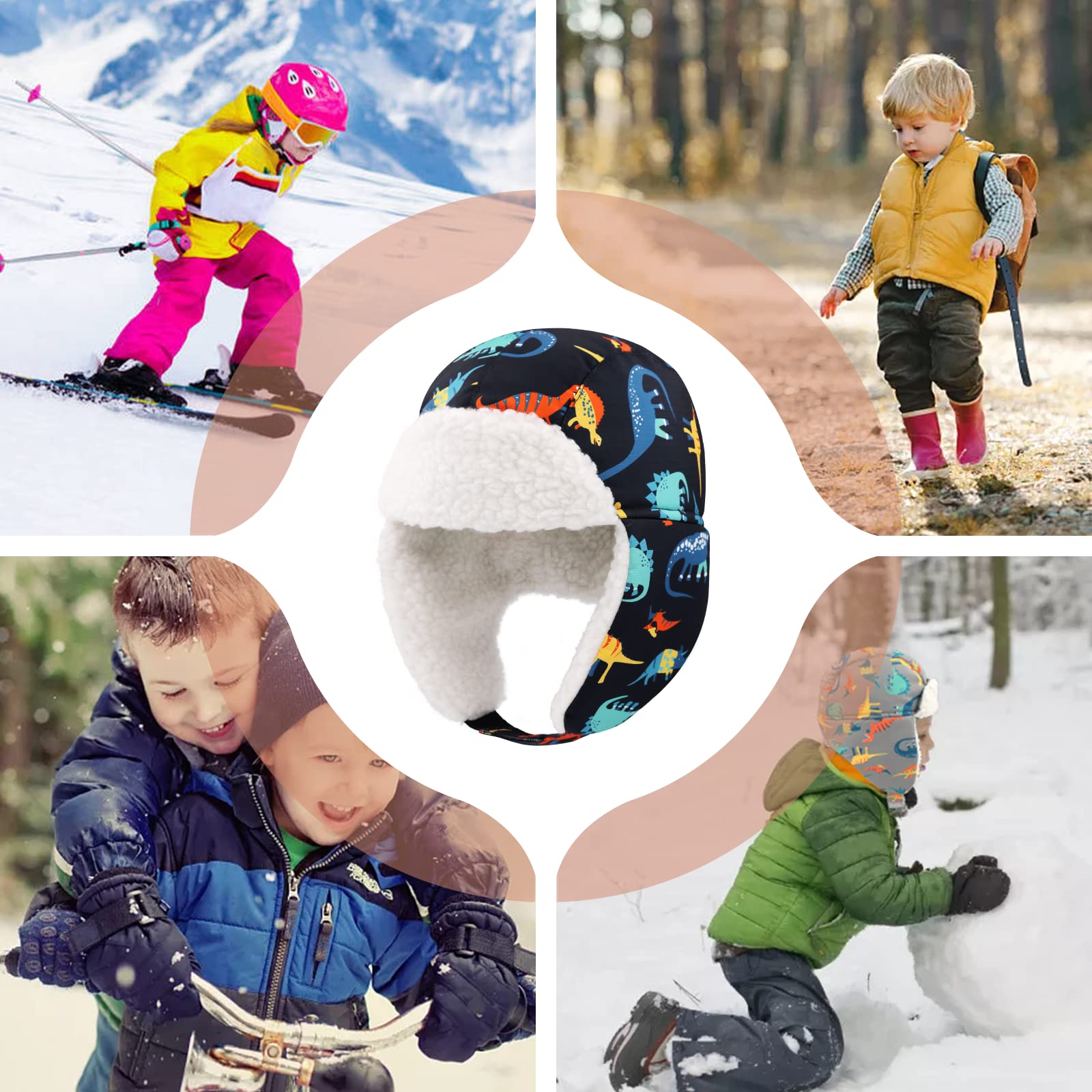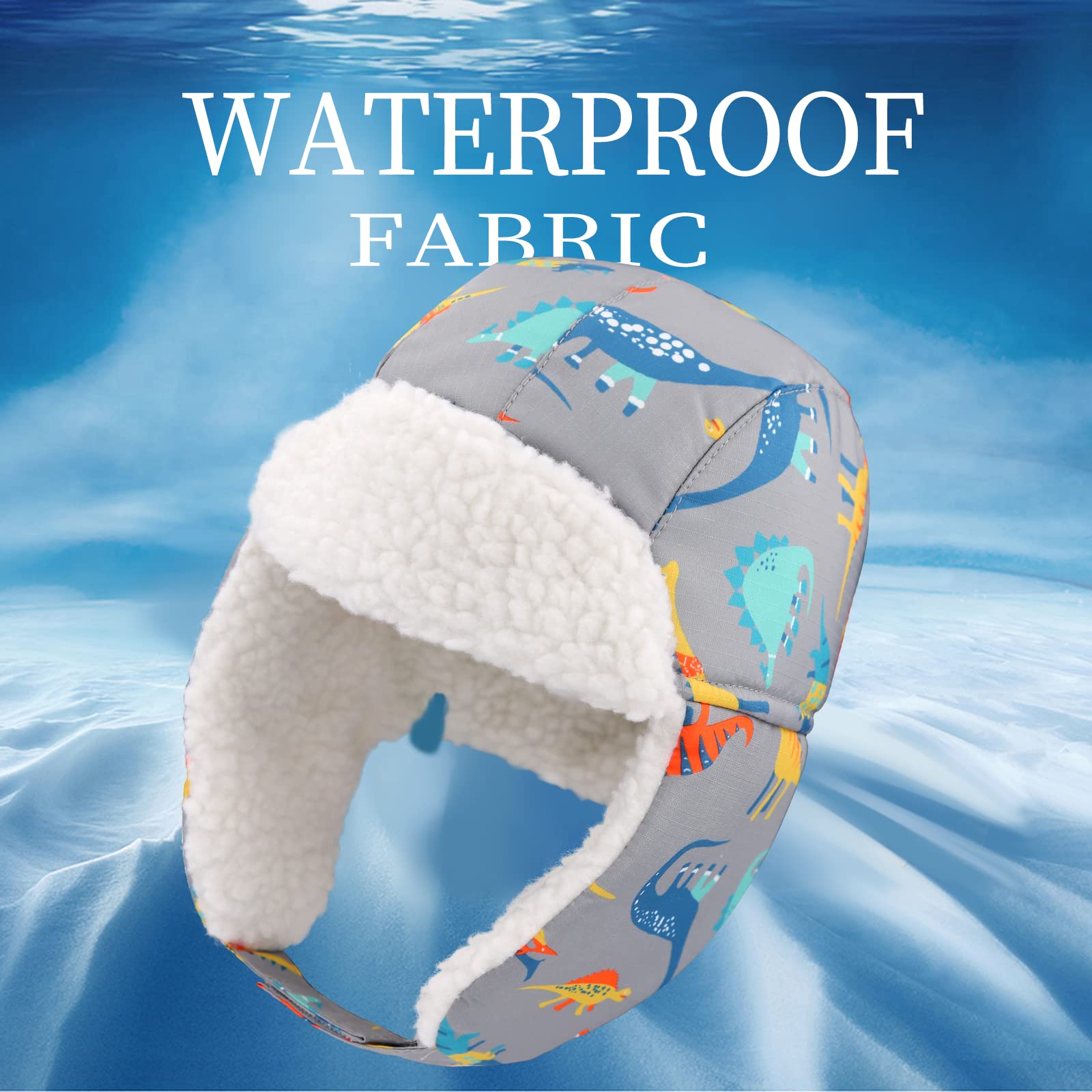 Winter Trapper Hat for Boys Girls Waterproof Warm Baby Toddler Ushanka Fleece Beanie Hats for 6M-6T (Orange Grey Dinosaur, 4-6T)