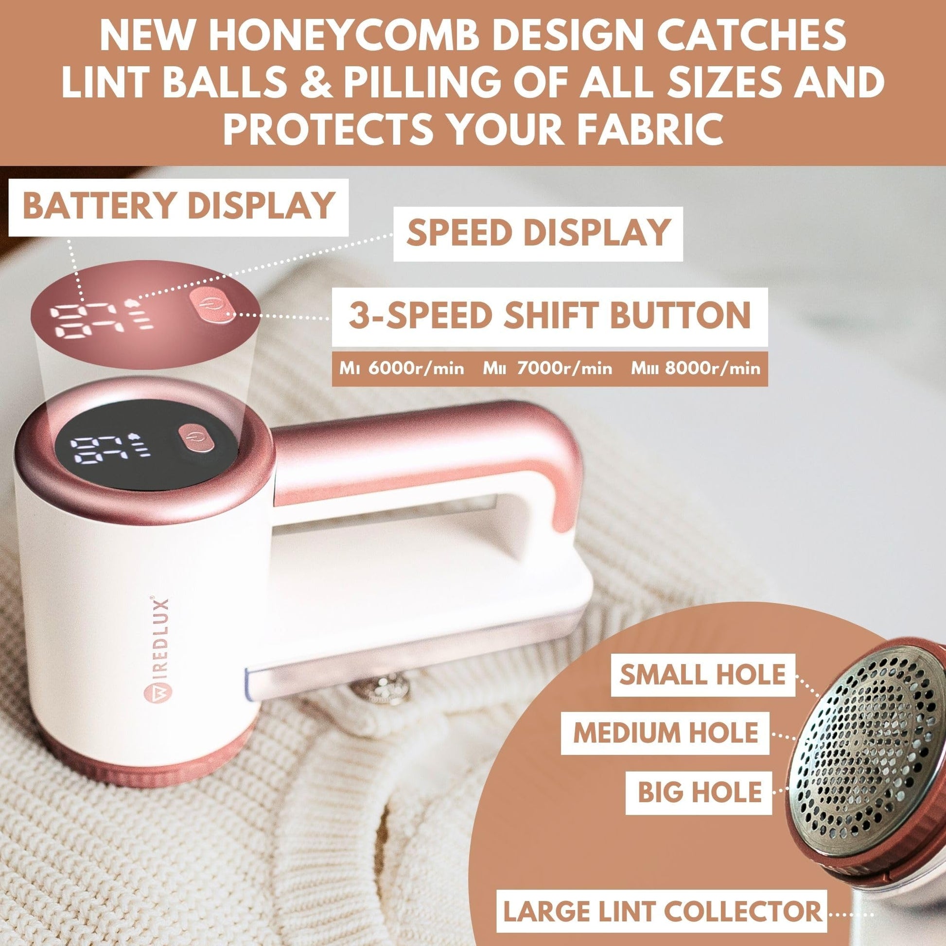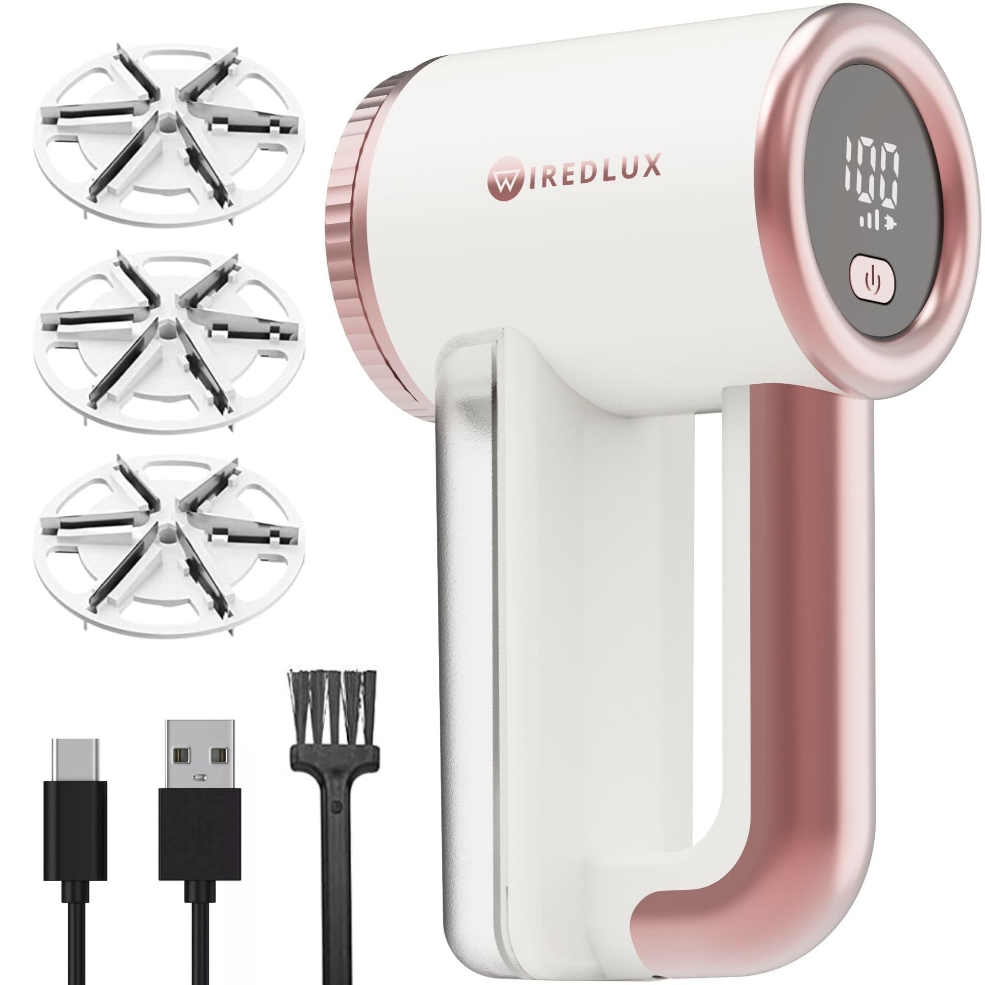 WiredLux Rechargeable Fabric Shaver - Electric Lint Remover for Clothes & Couch - Adjustable 3-Speed, 6-Leaf Blade, LED Display, USB Charging - Depiller with Dual Protection