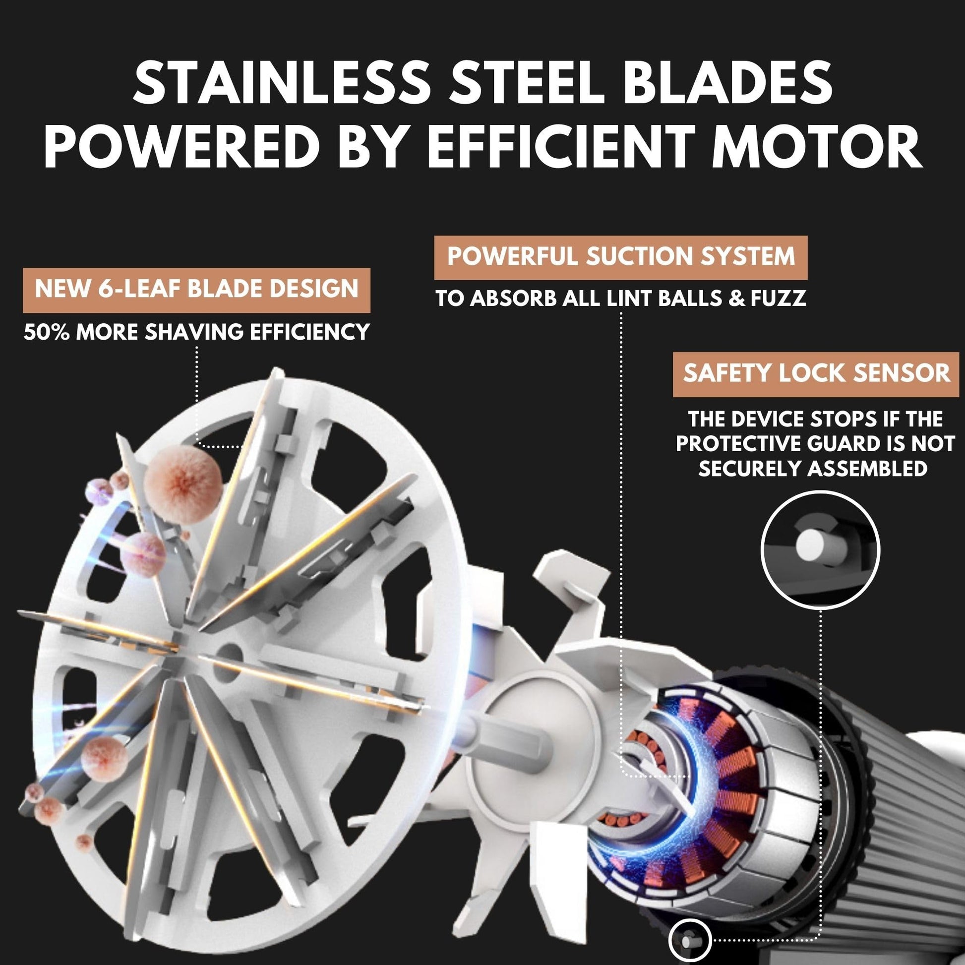 - 【EFFICIENT AND EASY TO USE】The 6-leaf stainless-steel blade is 50% quicker at removing fuzz than traditional blades. The large shaving panel and ergonomic handle make it easier to cover large surfaces. The LED display indicates the battery power and current speed. This fabric pilling remover comes with a large capacity trash tank to collect lint during use.