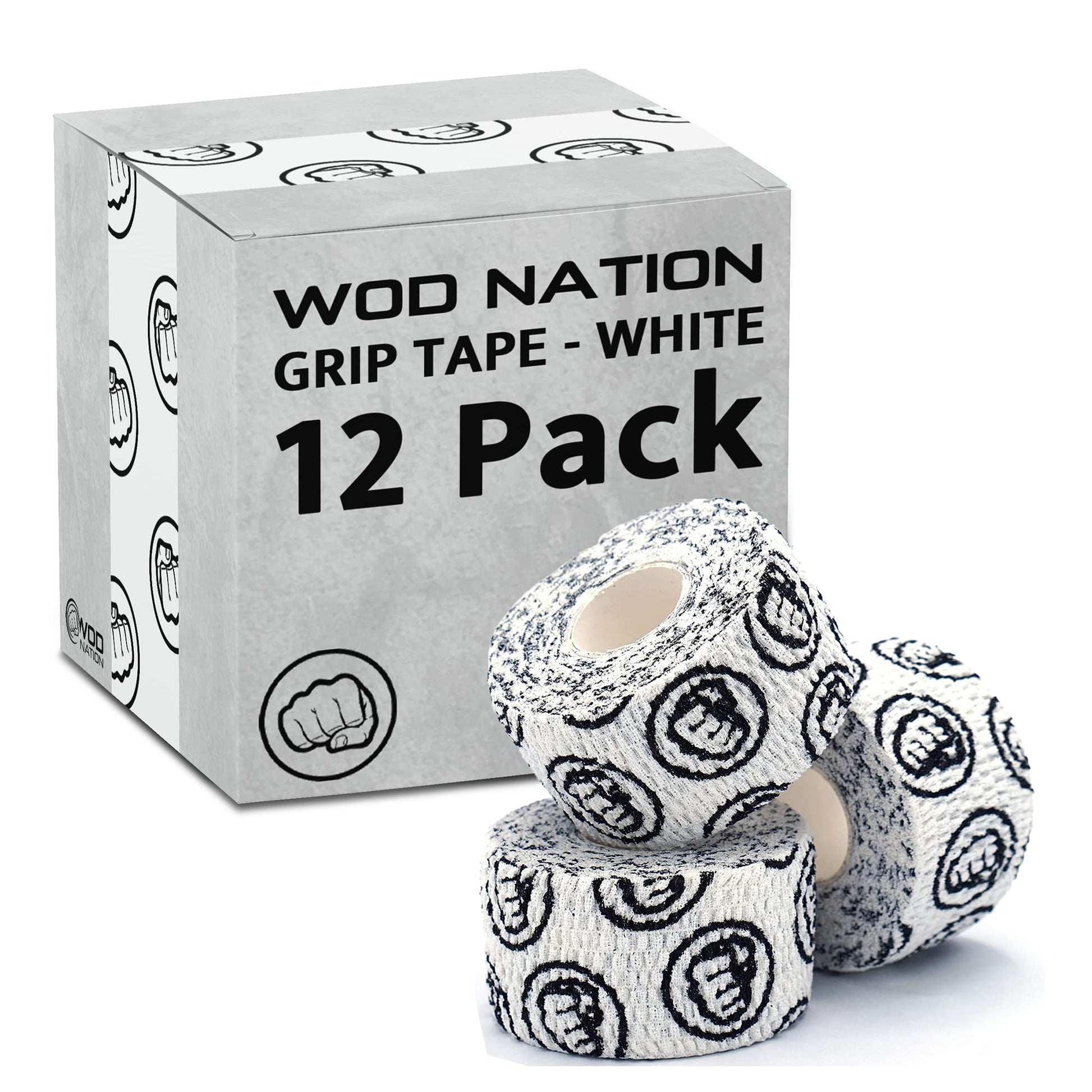 WOD Nation Weightlifting Hook Grip Tape - Bulk 3 Pack (23ft/Roll) Comfortable & Stretchy Athletic Thumb Tape for Weight Lifting, Cross Training - Protect Thumb, Wrist & Finger (White)