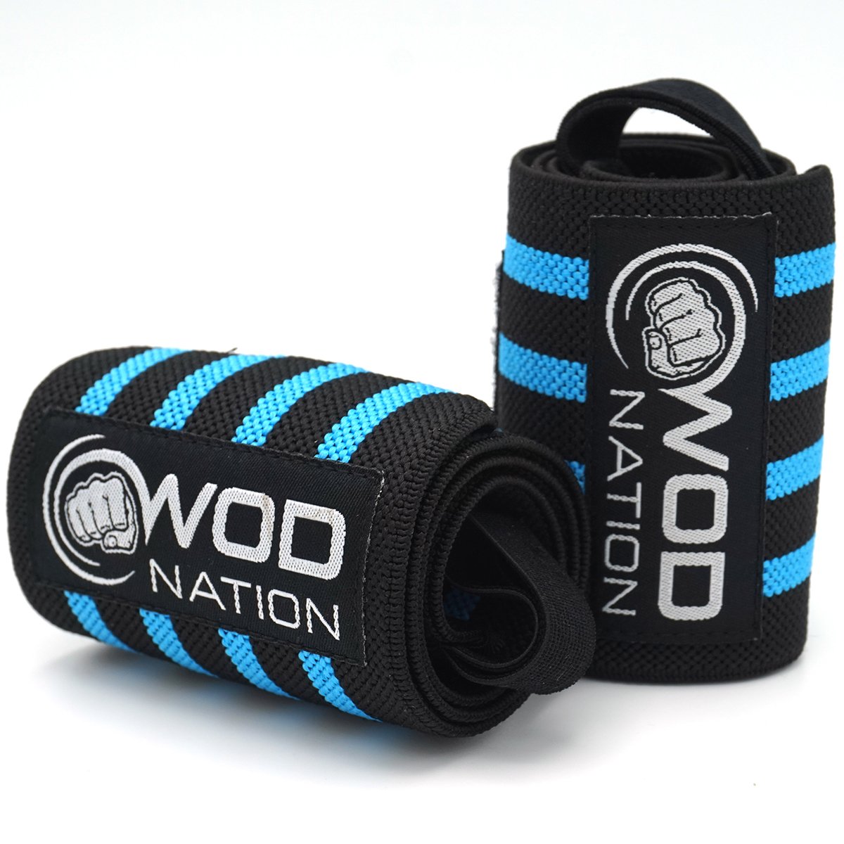WOD Nation Wrist Wraps for Weightlifting, 12” Professional Gym Wrist Straps w/Thumb Loop, Wrist Wraps for Men & Women, Wrist Support Wraps for Strength Training, Powerlifting & Bodybuilding (LT Blue)