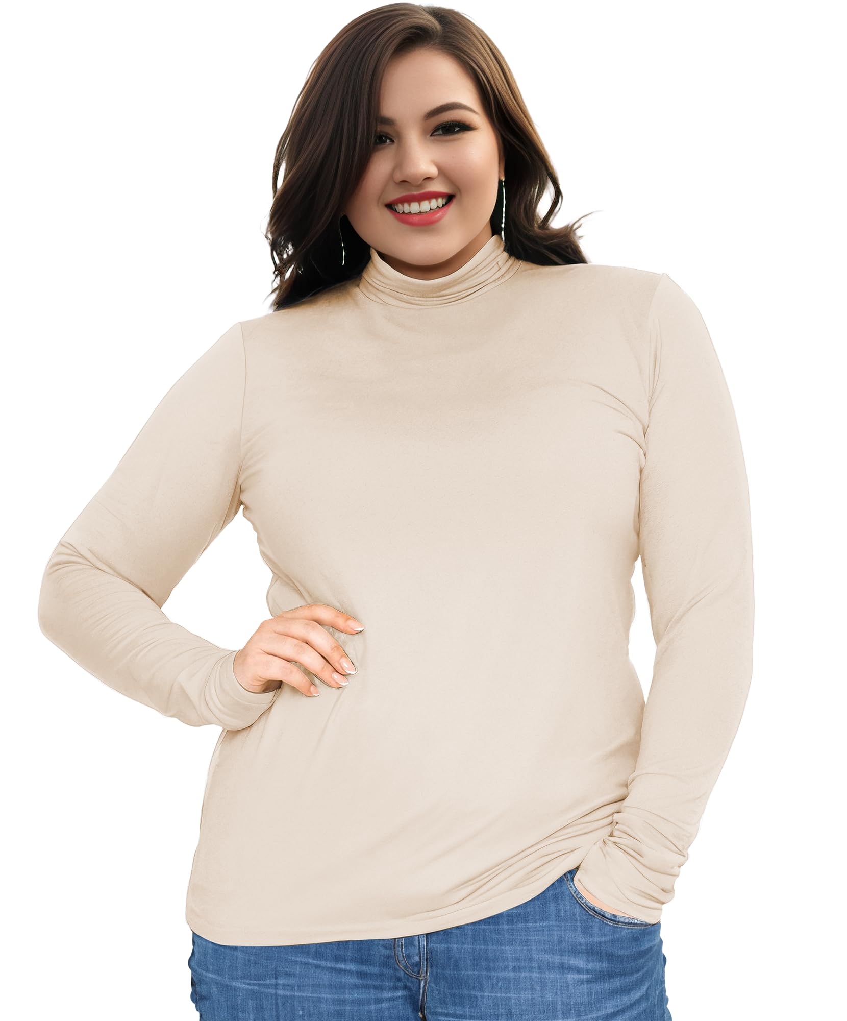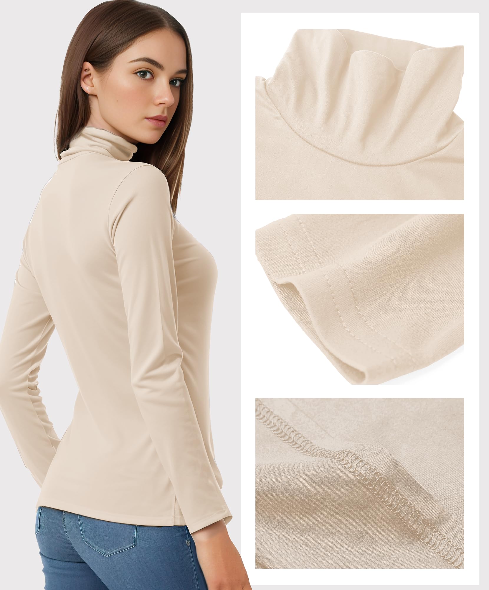 Womens Long Sleeve Turtleneck T-Shirts Mock Neck Underwear Fall Winter Fashion Base Layer Casual Lightweight Soft Tops Beige