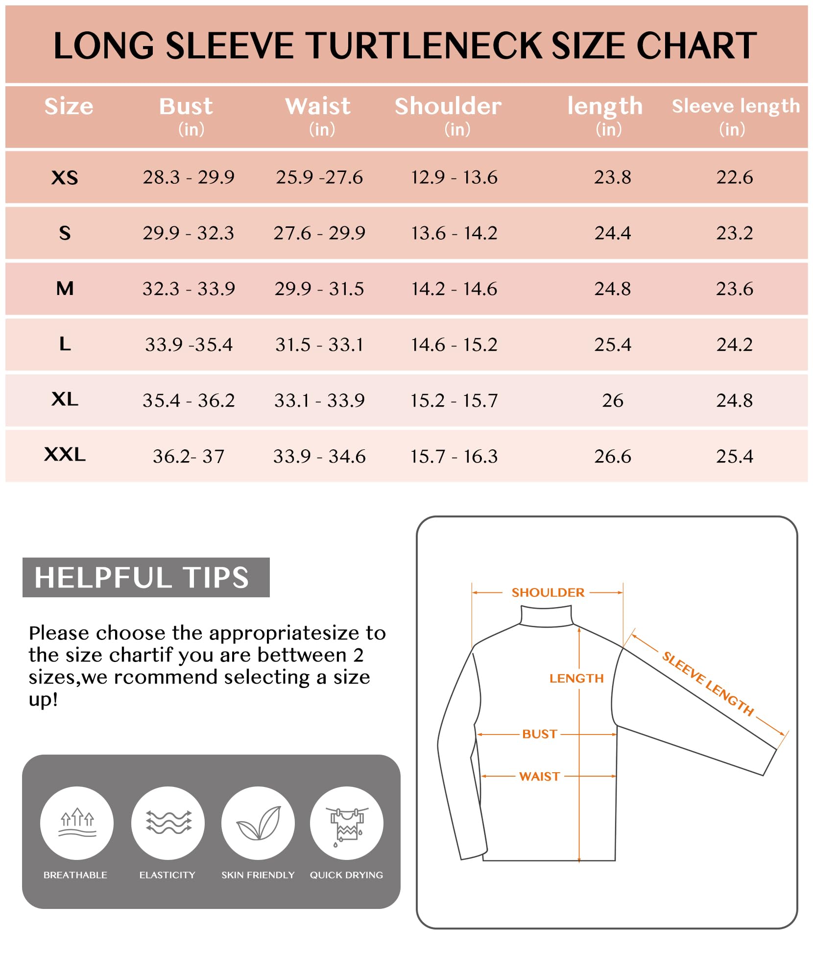 - 【A VARIETY OF SIZES ARE AVAILABLE】Our long sleeve turtle necks for womens come in 6 sizes to choose from. Please measure your hip, waist and bust before buying, and according to our size table choose the most suitable size for you. If your measurements are between two dimensions, please choose a size larger. If you find that the clothes do not fit or have any problems after purchase, please connection us, as a professional brand team we will give you the best after-sales service.
