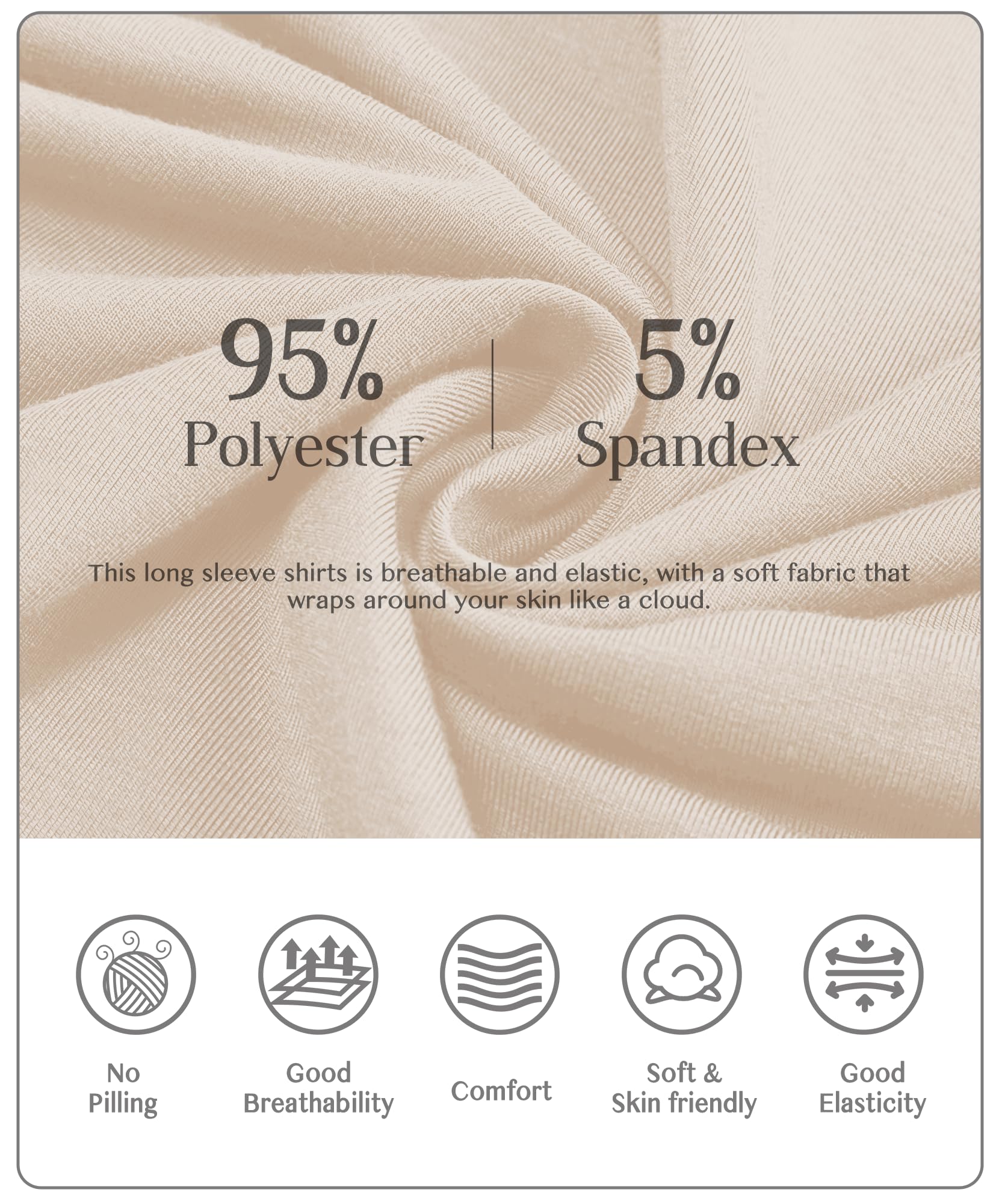 - 【COMFORTABLE SKIN-FRIENDLY】 Made of polyester and spandex, this long sleeve shirts is breathable and elastic, with a soft fabric that wraps around your skin like a cloud. Our turtleneck is the perfect combination of comfort, style, and versatility. Turtleneck for women clothing made from skin-friendly materials, absorbs sweat and breathes. These womens tops are designed to provide you with the utmost comfort, allowing you to move freely and confidently throughout the day.