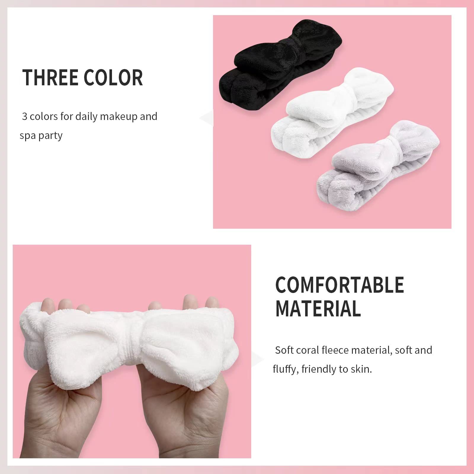 - 3Pcs Bow Hair Band: You’ll get 3pcs washing face headband with beautiful classic color- white, gray, and black. This soft hair band is the best choice for bathing and washing face, help you keep hair away out of face . A good bath and keep face clean will put you in a good mood!