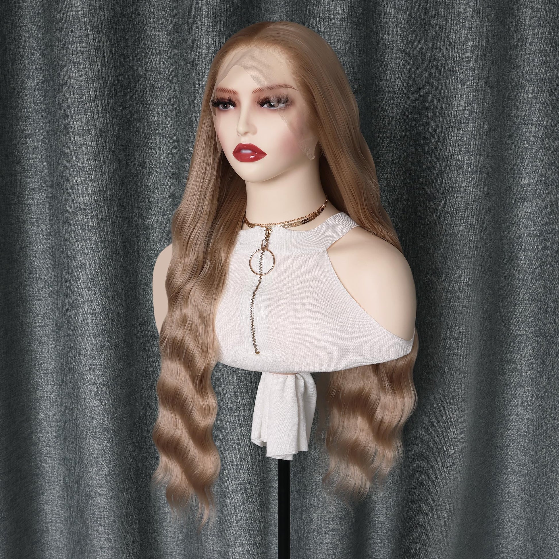 WXHWCX Long Wavy Blonde #103 Hair Synthetic Lace Front Wigs for Women Loose Wavy Free Part Glueless Lace Wigs Blonde Heat Resistant Fiber Natural Hairline Water Wave Wig Cosplay Daily Party Wigs