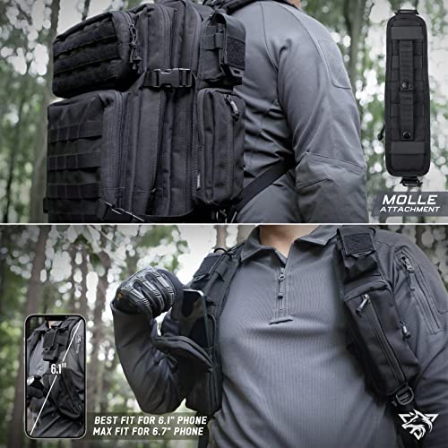 - DOUBLE ZIPPER-POCKET: Backpack strap pouch has 2 lower zip-compartments to divide your EDC gears on the shoulder, the outer long zip-pocket work great for sunglasses, TQ, or a flashlight. The enclosed main zip-compartment can hold a smartphone, power bank, notebook, and its interior slot pocket with elastic edge can store small kits like pens, cards, and glow sticks stably.