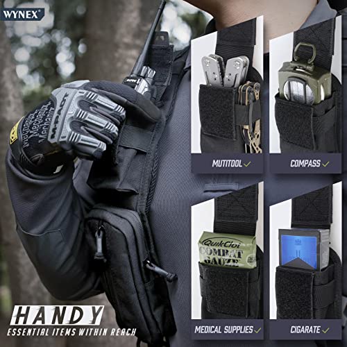 - PRACTICAL TOP POCKET: Molle Backpack Attachment upgrade the top pocket's closure in response to the advice from Wynex's fans, we replace the plastic buckle with a Hook-N-Loop flap/cover. Retain the concealed inner Hook-N-Loop design to adjust the pocket height and size. More convenient and stable to store a radio, walkie-talkie, GPS, and compass during outdoor strenuous exercises.
