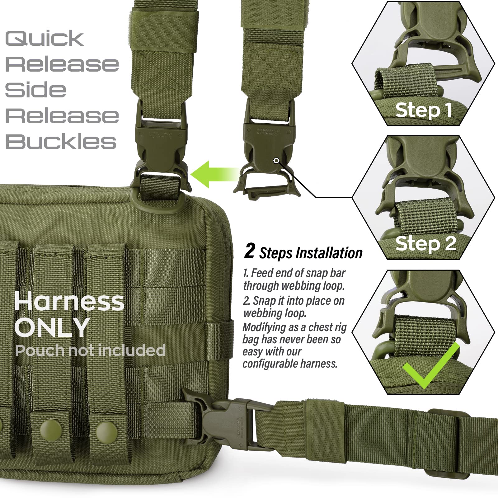 - GOOD SOLUTION TO BECOME A CHEST RIG PACK! Combat harness fit for most admin pouch of WYNEX, it's a easy and no-sew solution to switch as a chest rig in various occasions as you need. Release your hands and make you move more quickly.