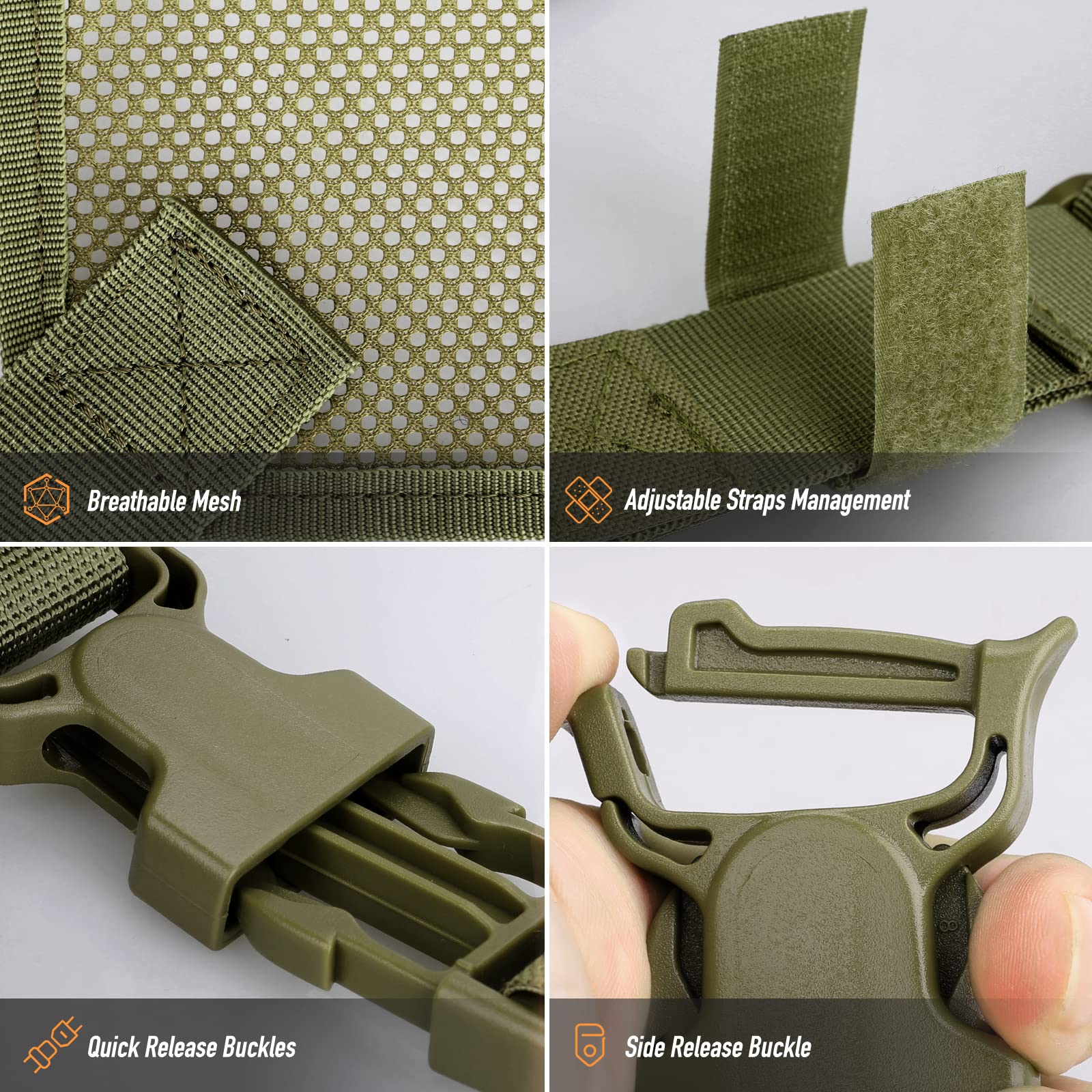 - EASY TO ATTACH: Tactical Suspender adopt the snap bar buckle and just run it through the top D-ring webbing loop, and the rear Molle webbing of your tactical admin pouch/chest bag, then deadly snap into place or side-release to take off, easy to fits 1'/25mm webbing and standard Molle webbing.