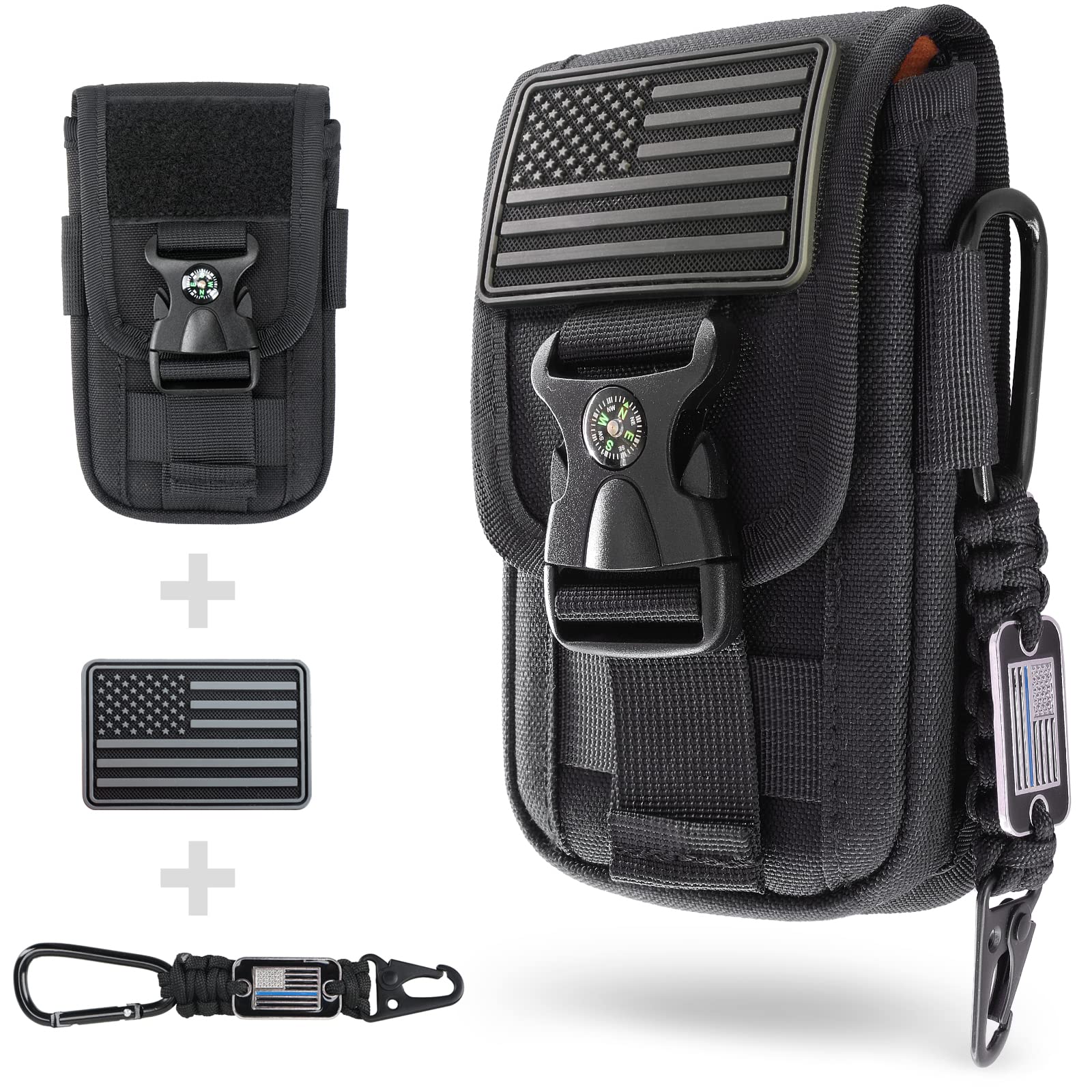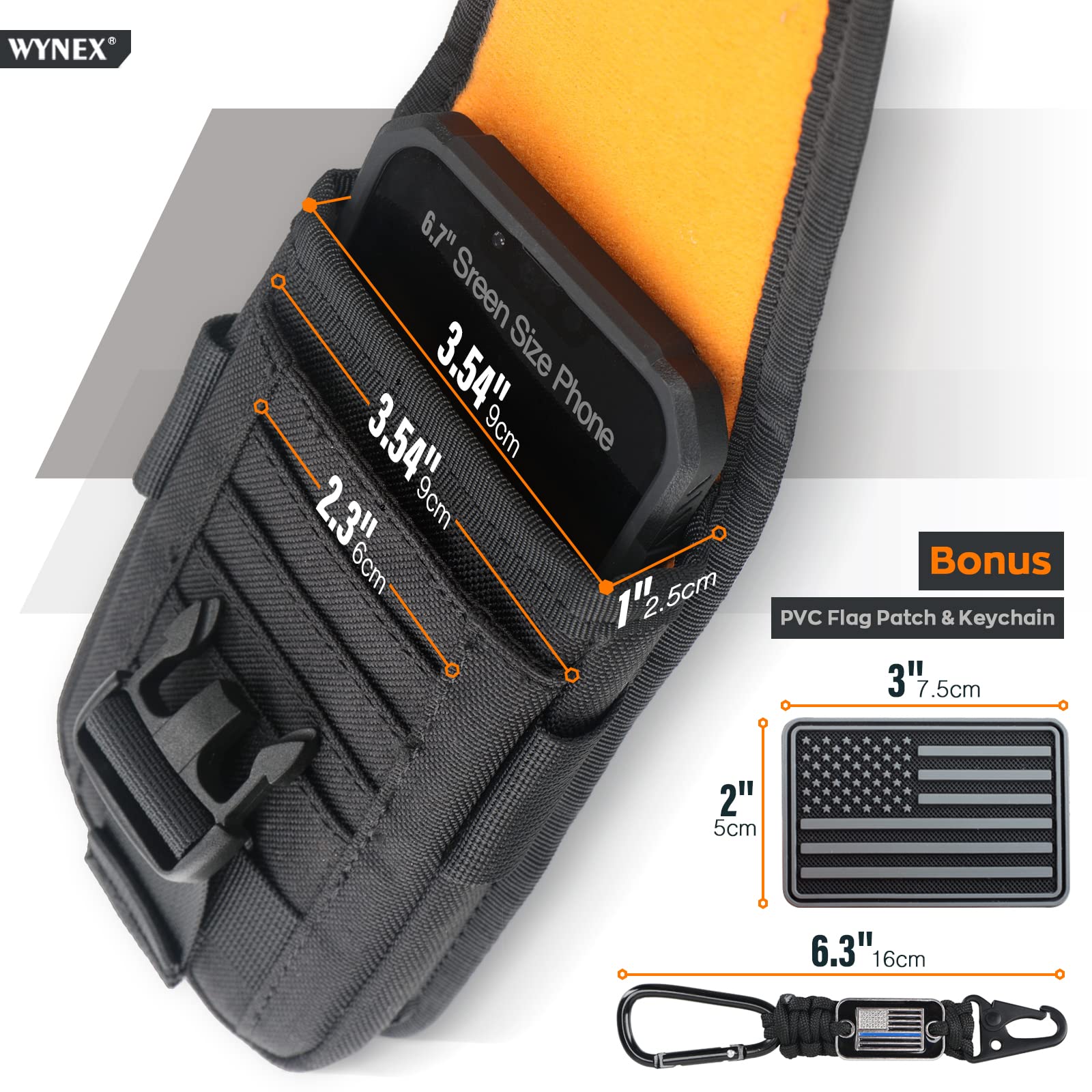 WYNEX Tactical Molle Phone Pouch with Compass Buckle, Tactical Phone Holster Molle Cell Phone Pouch Universal Belt Waist Bag for IP 15/14/13 Pro Max / S22/S21 with US Patch & Paracord Keyring Clip