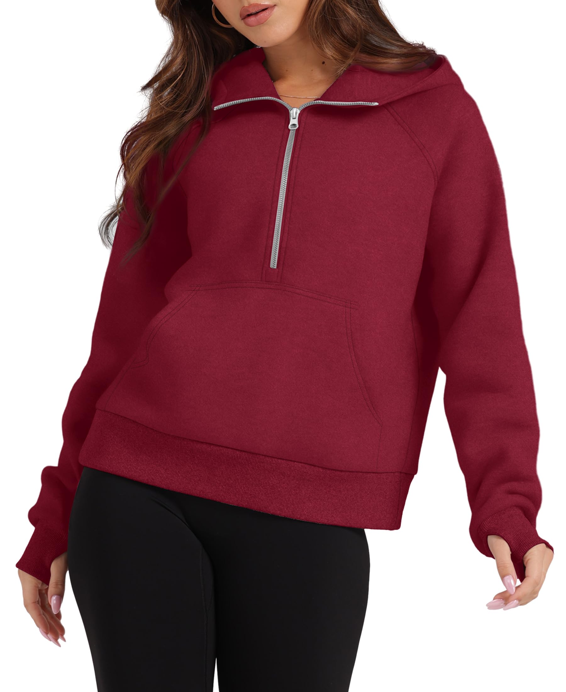 XIEERDUO Half Zip Sweatshirts Cropped Hoodies Fleece Jackets Womens Quarter Zip Up Pullover Fall Outfits 2025 Winter Clothes Red M