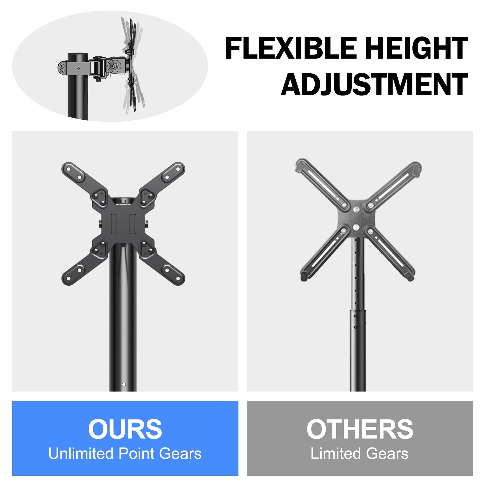 - HEIGHT ADJUSTMENT: Featuring unlimited point adjustable height, max height 52.95”. The TV mount stand allows you to position the screen closer to eye level for better viewing experience.