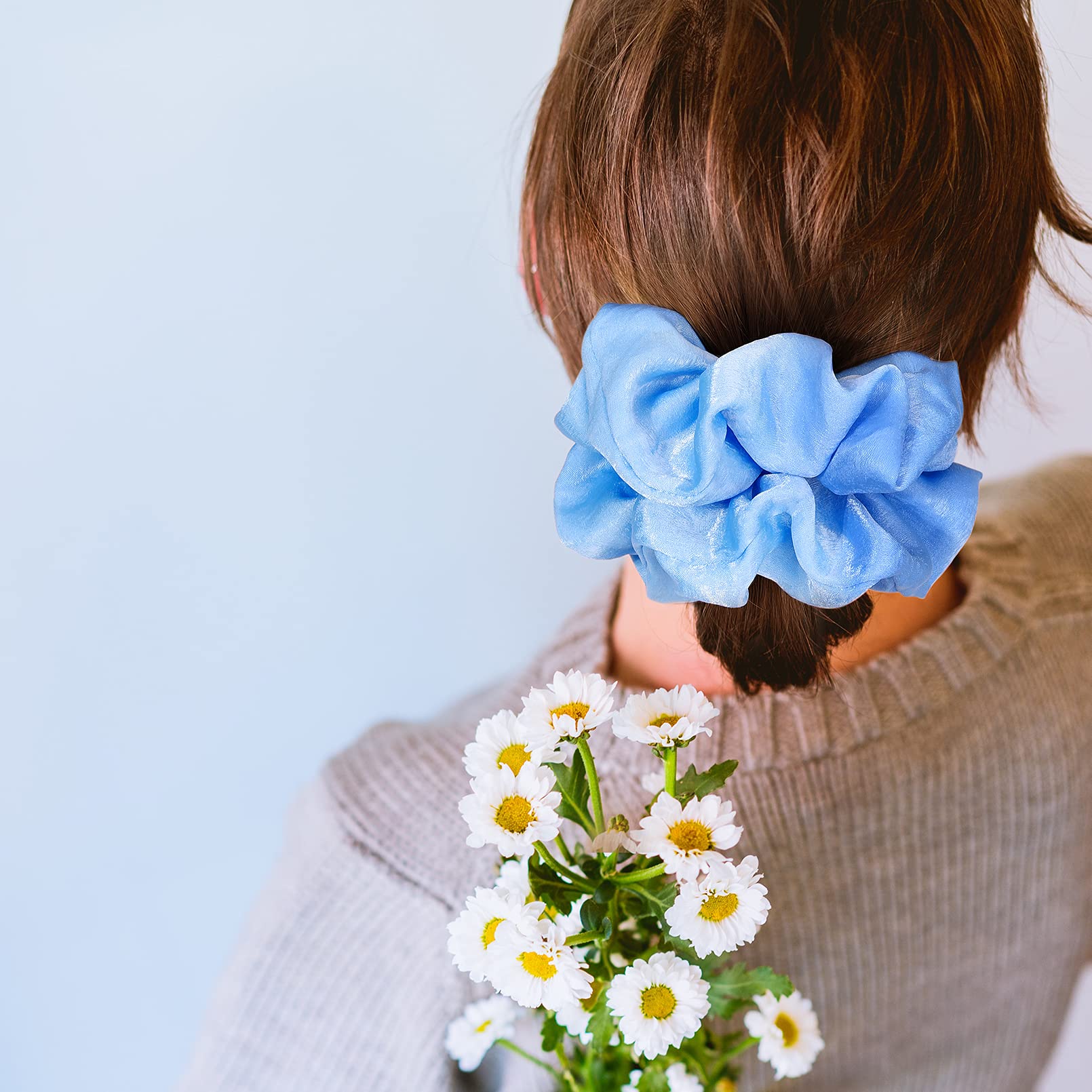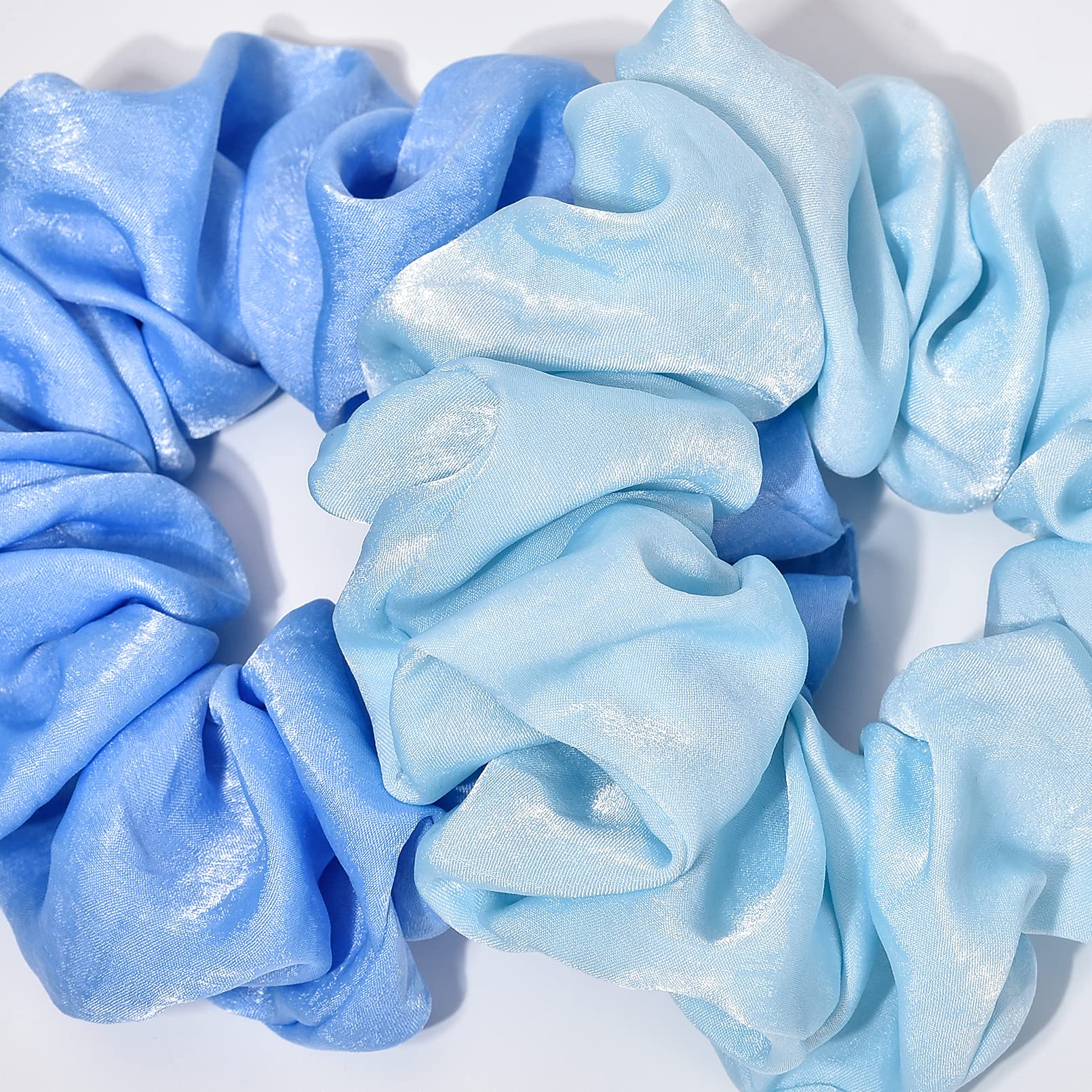 XL Big Silk Scrunchies Hair Ties for Women - CEELGON Oversized Satin Silk Scrunchie Exra Large Jumbo Gaint Soft Chiffon Cute Scrunchy for Curl Thick Hair 4 Pack (Blue Series)