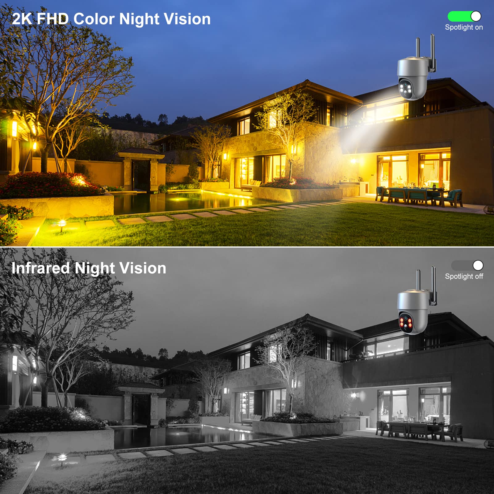 - [Color Night Vision] HD resolution allows you to see every license plate and every face. This solar-powered security camera is equipped with flashlights that allow you to view every corner in full color at night.A clear view brings you absolute security!