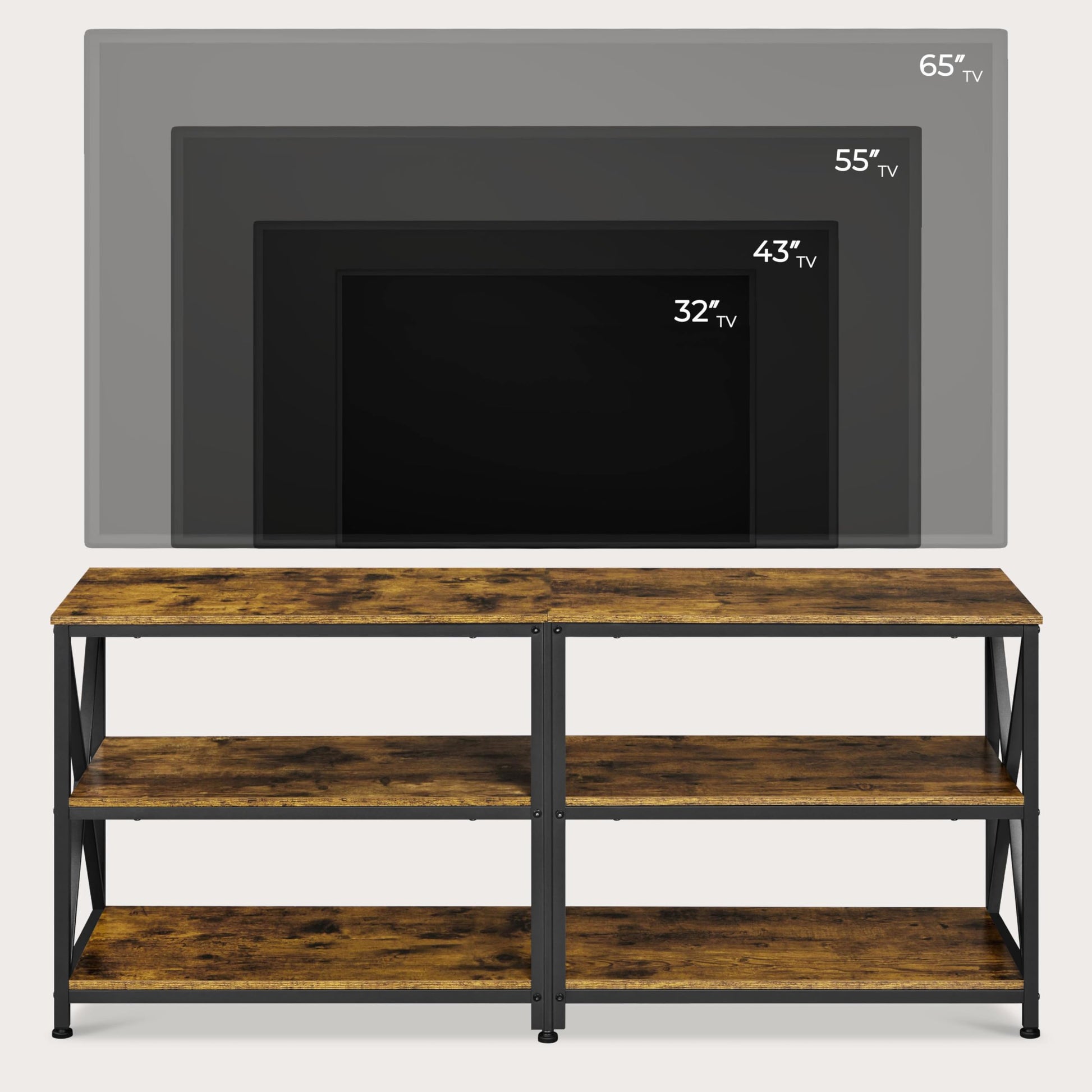 - X-shape Side Structure for Extra Stability: 2 X-shape reinforced structures on the two sides provide extra structural stabilization. Meanwhile, they highlight the industrial elements of this TV stand with storage, bringing more possibilities to its application in the scene