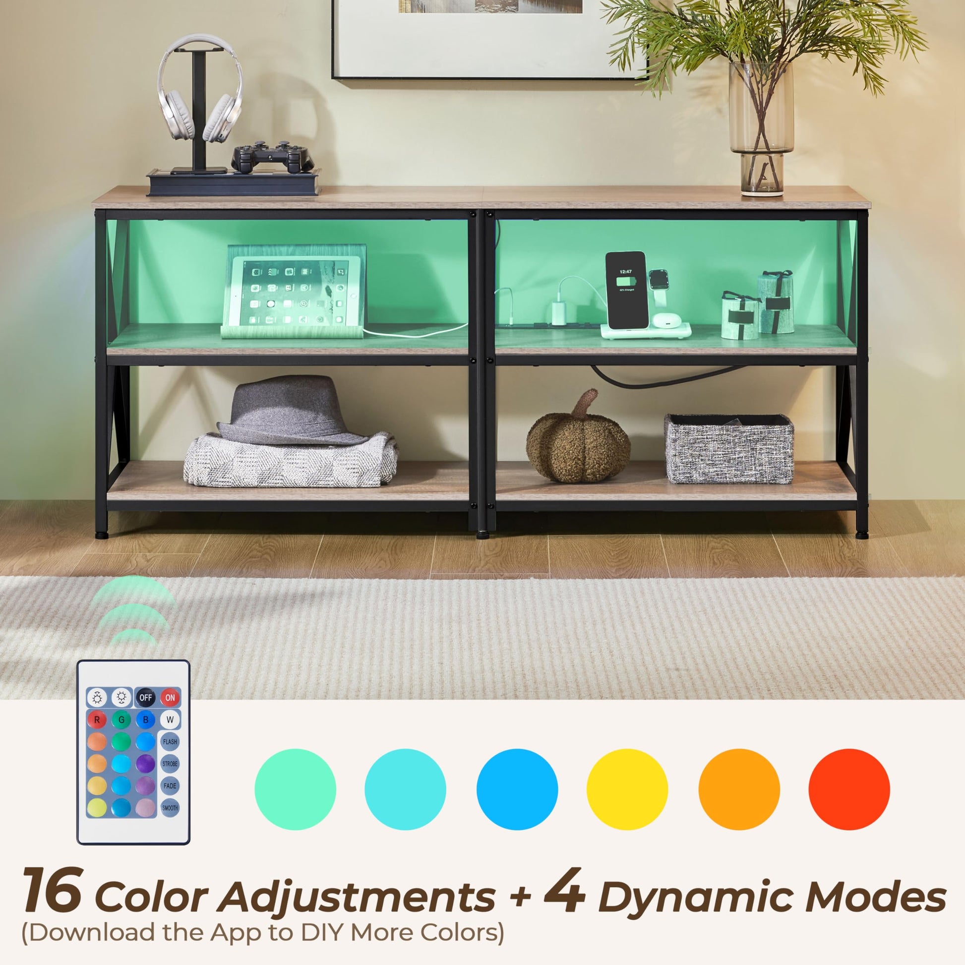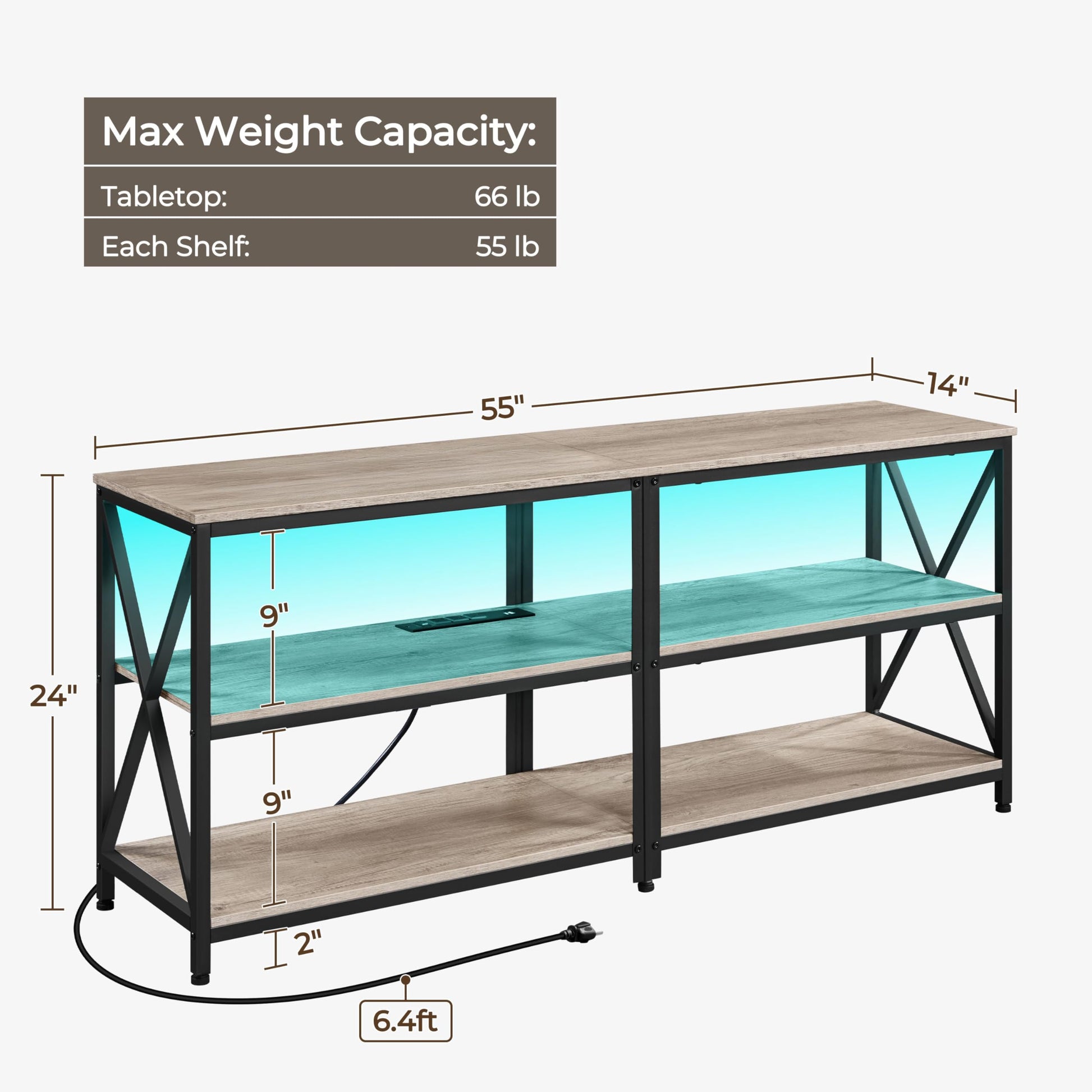 - Fits 65' TVs: With dimensions of 55'L × 14'W × 24'H, this TV console table, featuring power outlet and LED lights, supports TVs up to 65 inch and 66 lb. Please verify your TV’s size and weight before ordering.