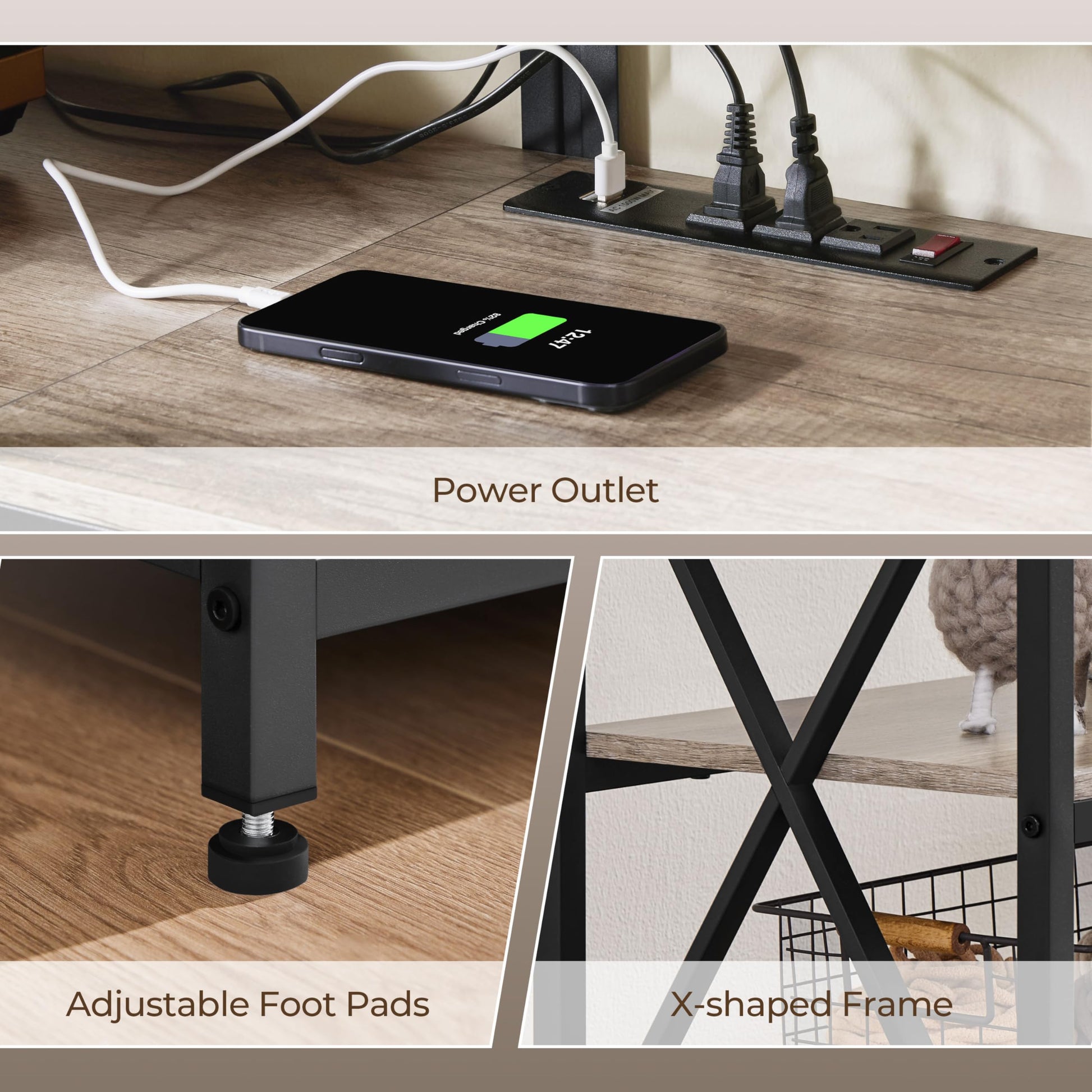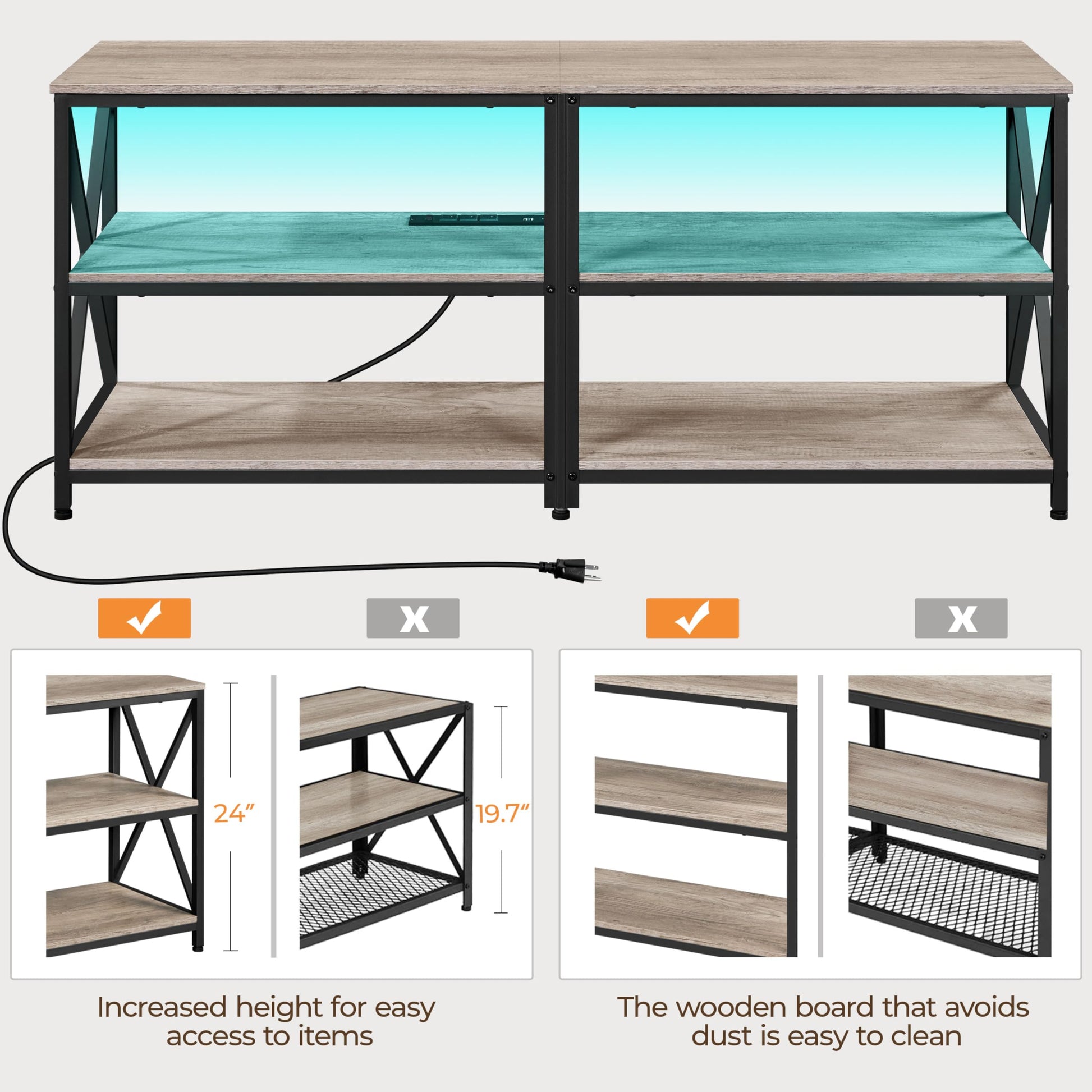 Yaheetech TV Stand with Power Outlet, Industrial Entertainment Center with LED Lights for 65 Inch TV, 3 Tiers Tv Console with Charging Station for Living Room, Media Console with Shelves, Gray