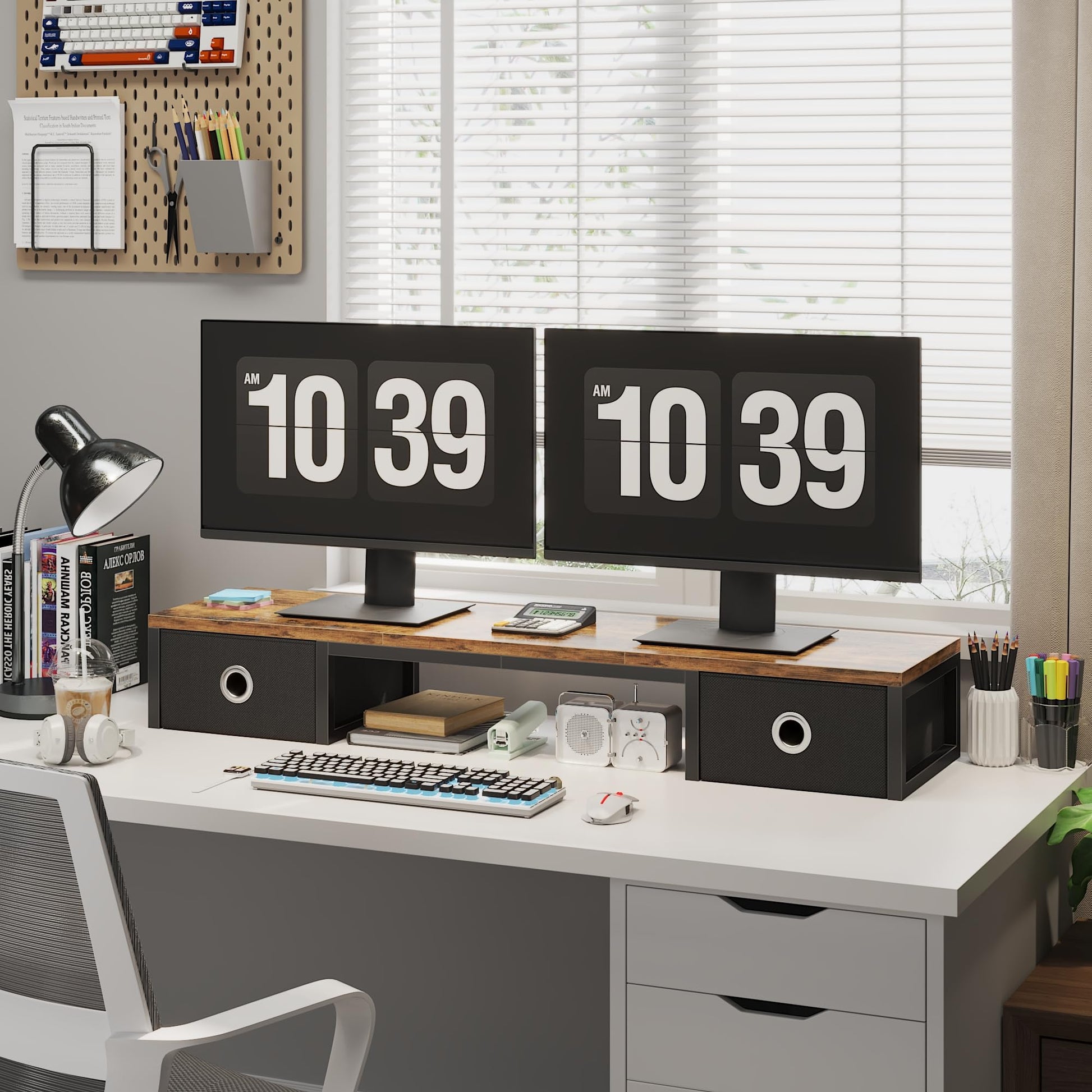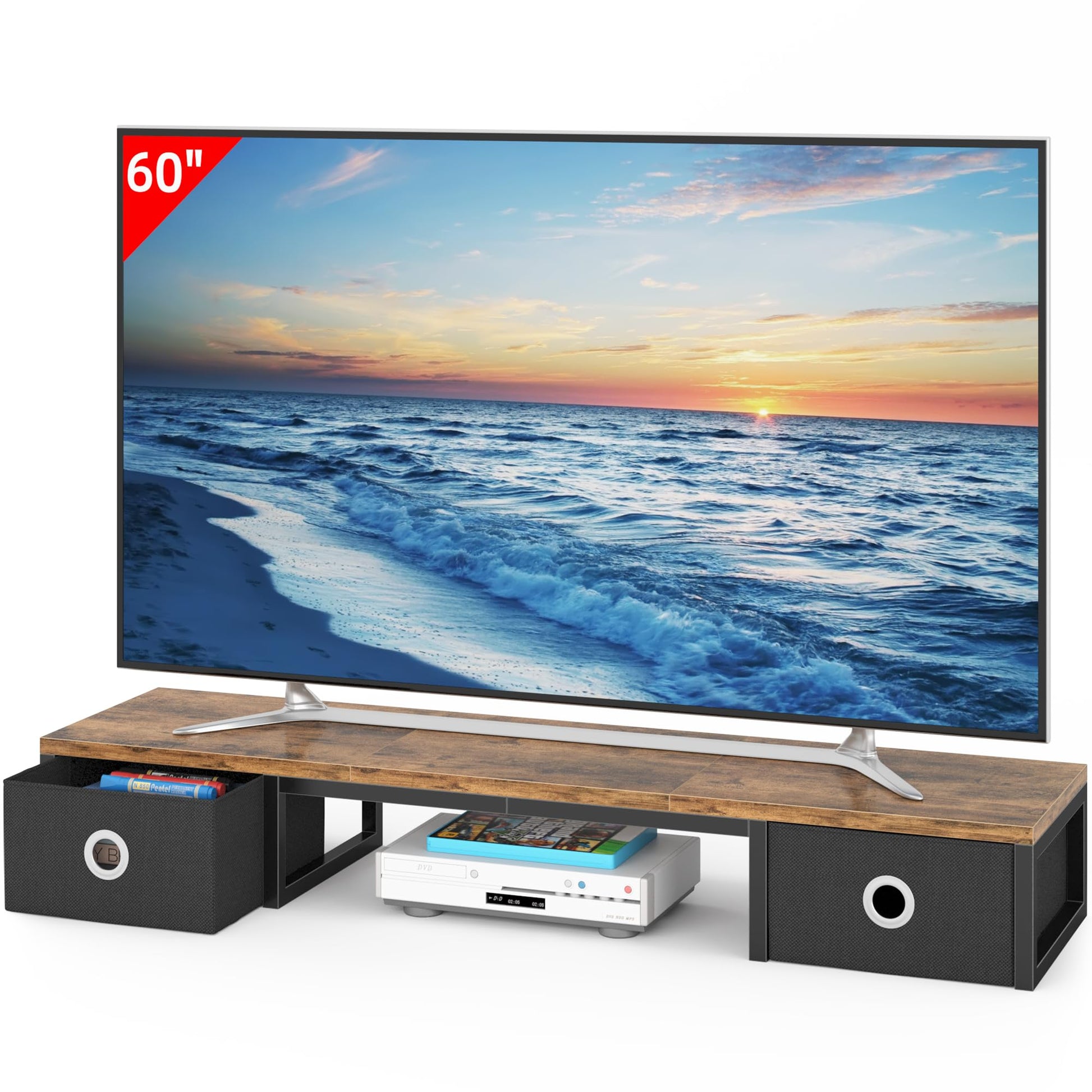 YAOHUOO 45" Large TV Riser with Fabric Drawers for 32-60 inch TV, TV Stand Riser with Steel Legs, Tabletop TV Riser Shelf, Monitor Stand Riser for Home Office, Rustic Brown