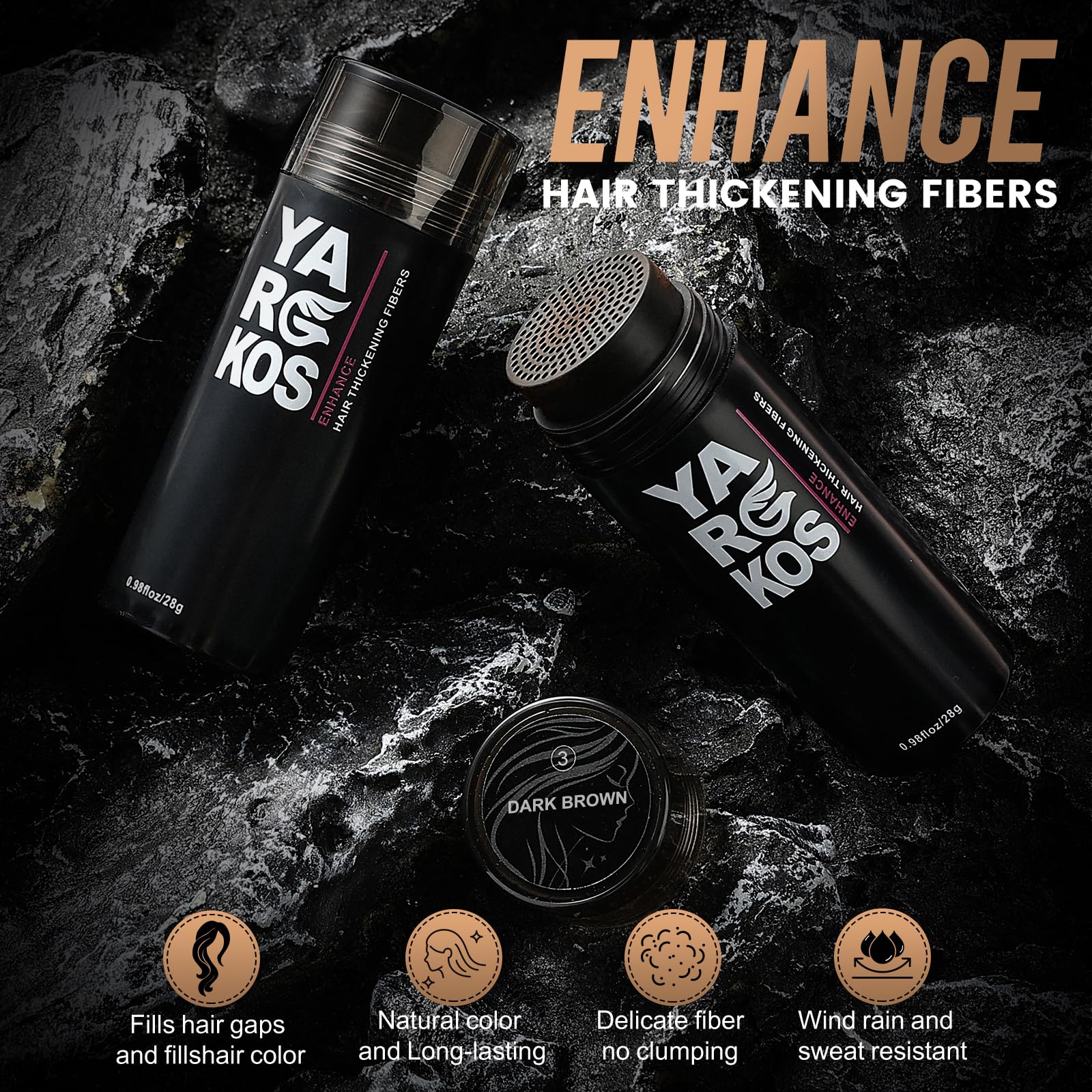 - Fill for Thin Hair - Yargkos Dark Brown hair fibers create a natural look. Crafted from natural ingredients, Yargkos Hair Thickening Fibers seamlessly blend with existing hair, creating a realistic, eye-invisible hair effect. 28g/0.98 floz