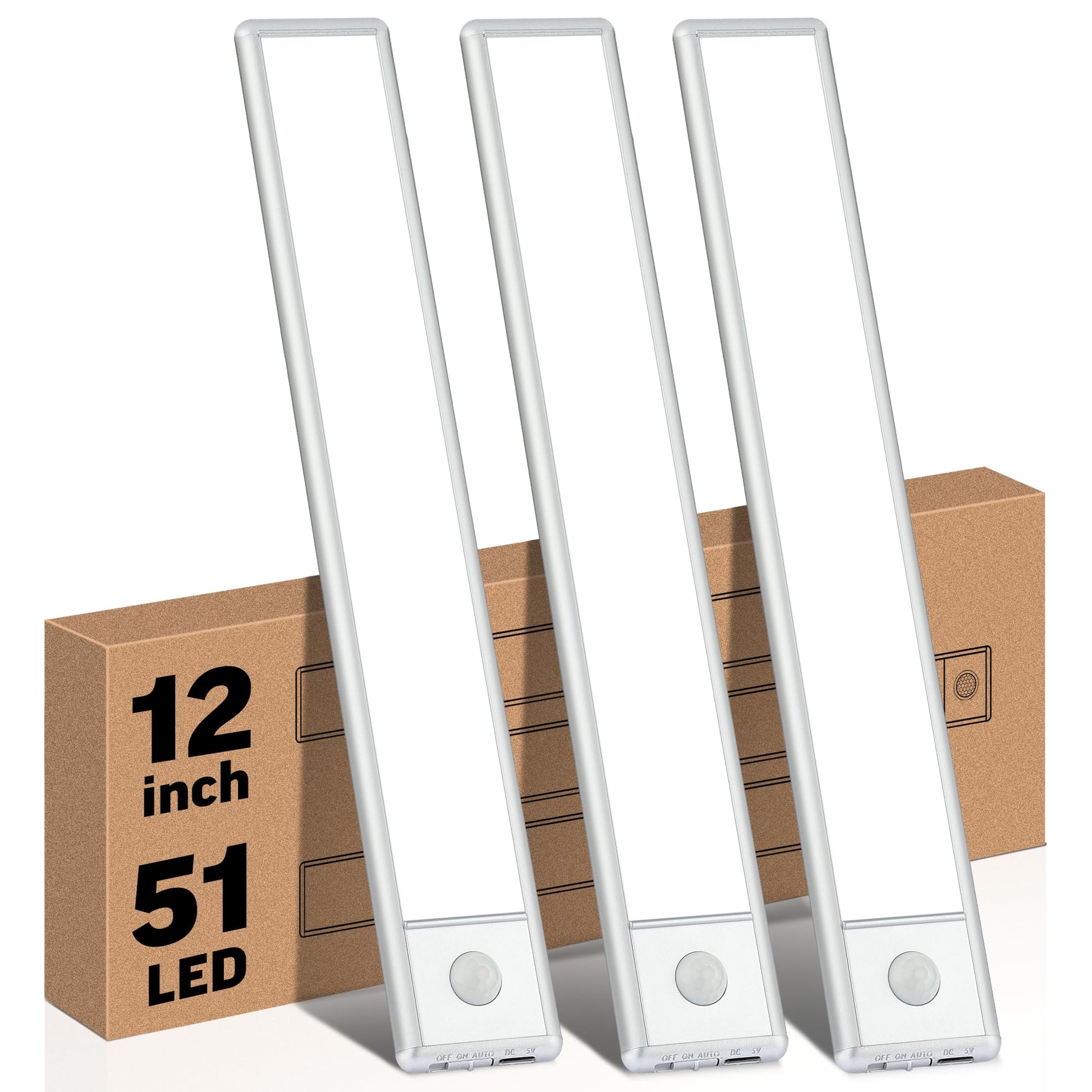 YLXS 51-LED Motion Sensor Under Cabinet Light, 12-inch Magnetic Rechargeable Under Counter Closet Lights, Wireless Night Light Bar, 3-Pack, Cool White