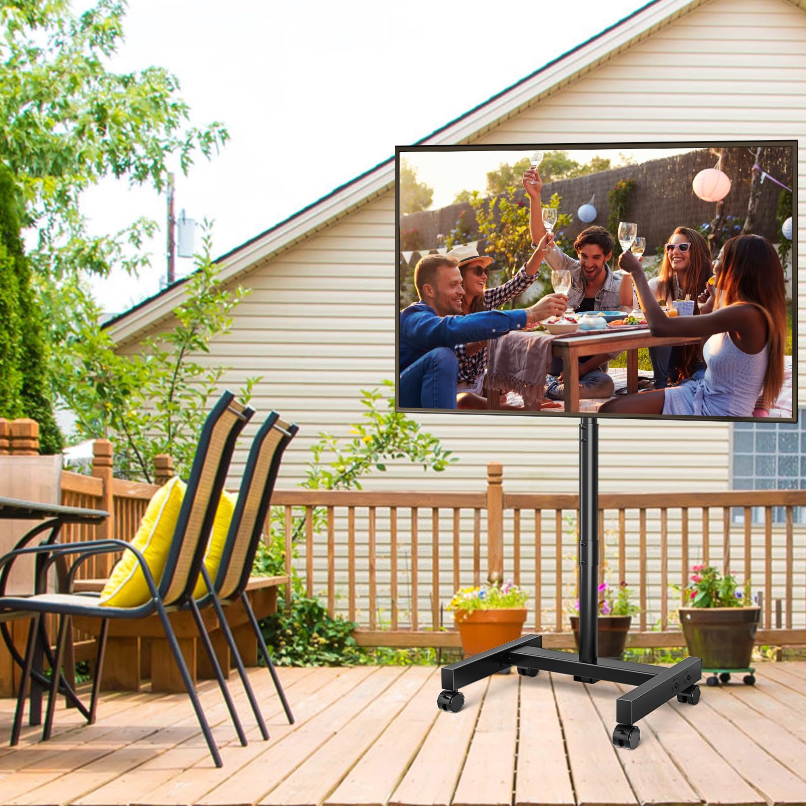 - ✔️ Universal Rolling TV Cart - This outdoor tv stand can hold most LCD, LED, OLED, 4K, Smart, Outdoor, Flat screen and Curved TV or computer monitor types ranging in size 13-50 inch weighing up to 44 lbs, fits VESA 75x75mm (3”x3”)- 200x200mm (8”x8”). The tv stand on wheels allow you to effortlessly move the TV from one room to another, it would be great for a home, bedroom, dorm room, classroom, patio an office and much more.