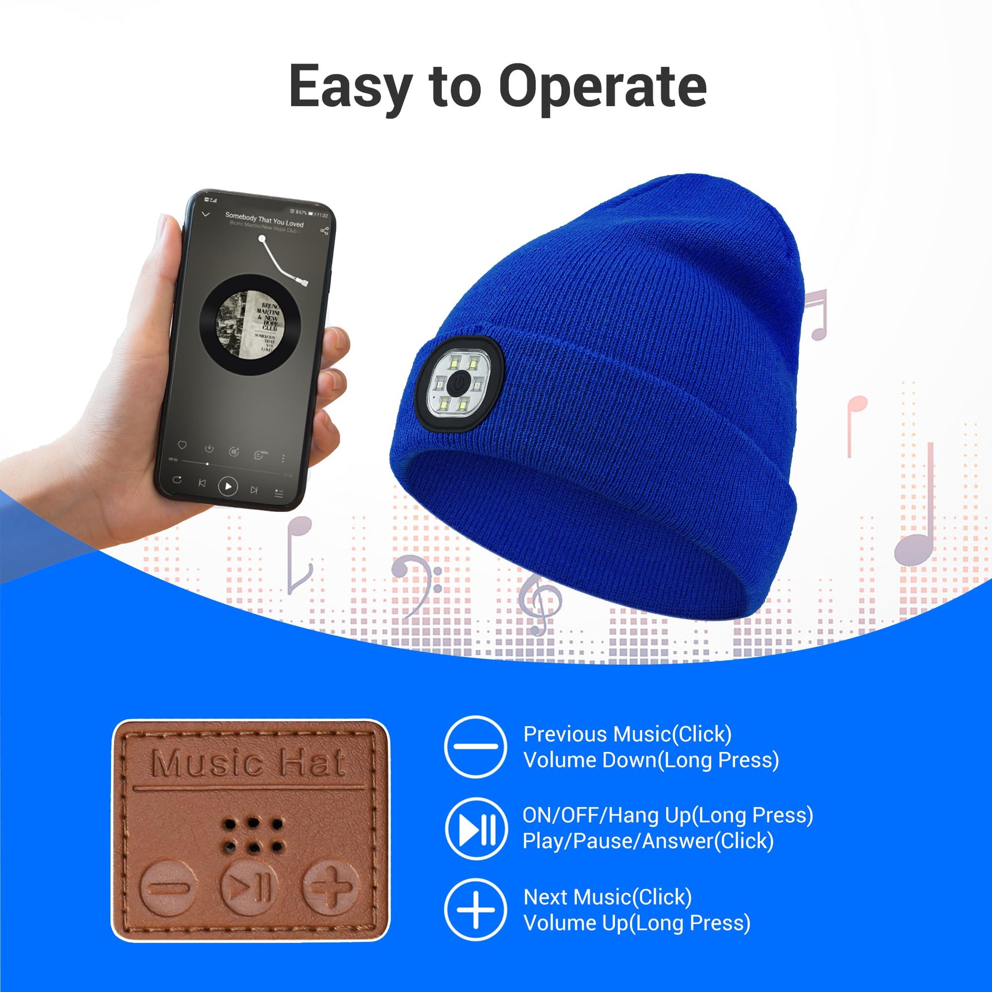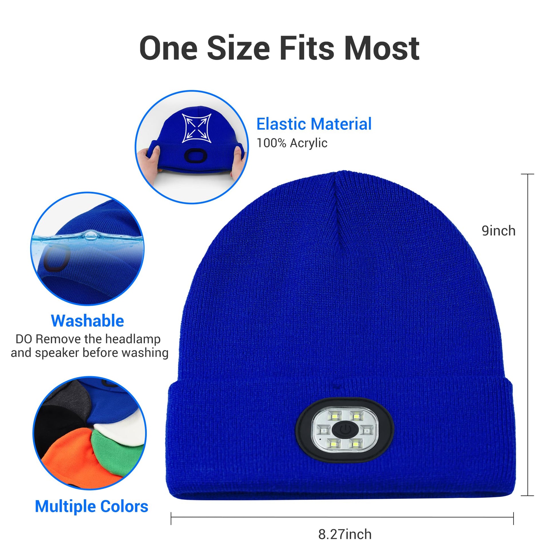 - Great Material: The beanie is made of soft, stretchable, and high-quality acrylic, ensuring comfort and a good fit for most people. Additionally, the Bluetooth module and light are removable, allowing for easy cleaning of the beanie.