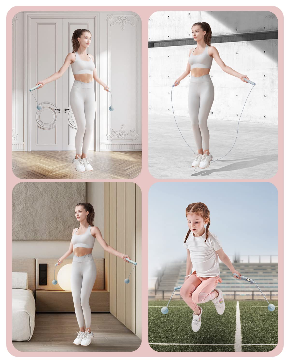 - 5.Women's Smart Jump Rope - Cordless/Corded, Indoors/Outdoors: Easily switch between cordless and corded options for jump rope training anytime, anywhere. Our jump rope is suitable for all ages and fitness levels, making it perfect for use in small spaces such as offices, bedrooms, and living rooms. Stay in shape with the versatile YOTTOY jump rope.