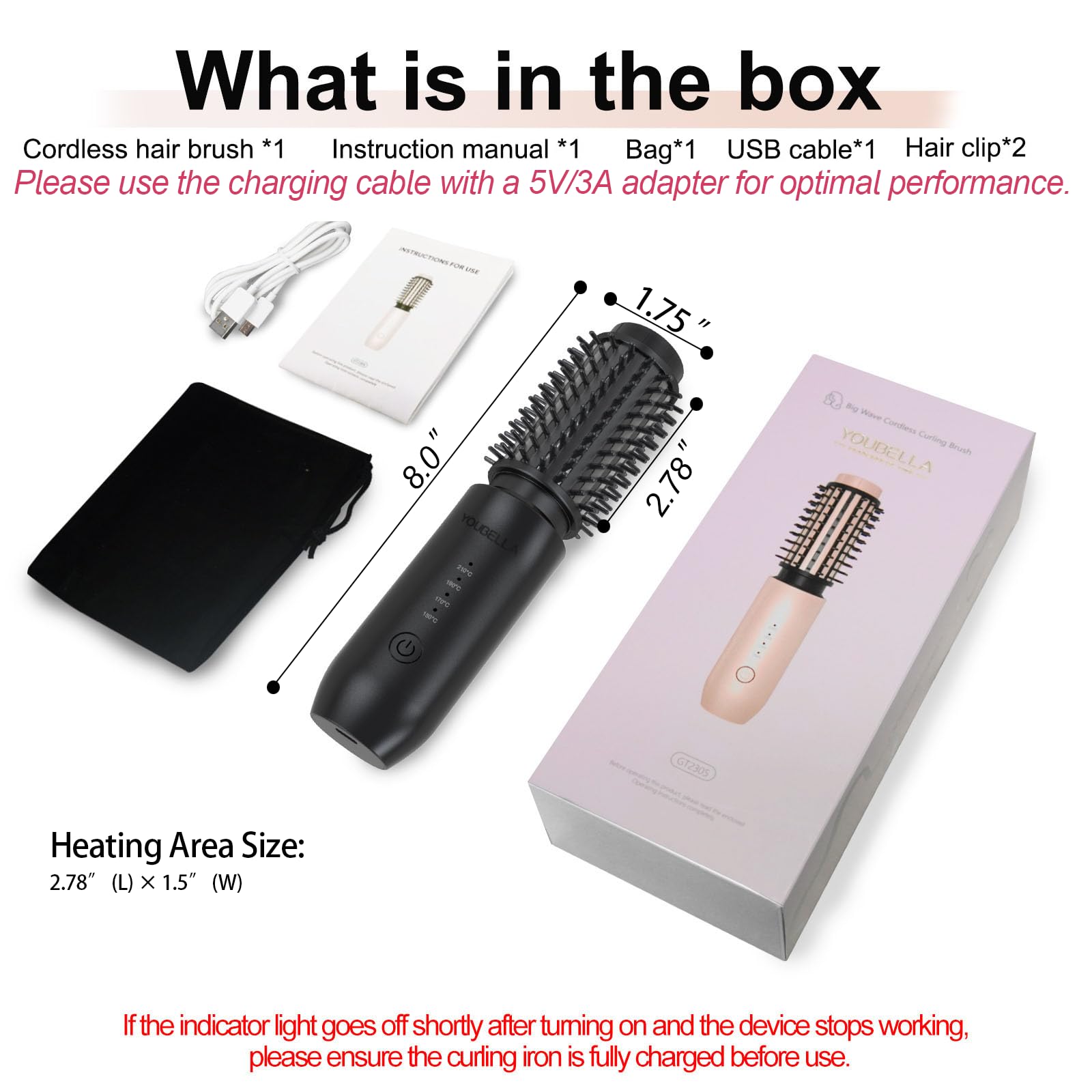- 【Mini & Cordless】This portable cordless curling iron brush is compact and lightweight, making it the perfect cordless curling brush for travel. Style your hair easily, whether at home or on the go, with this dual-purpose cordless hair curler.