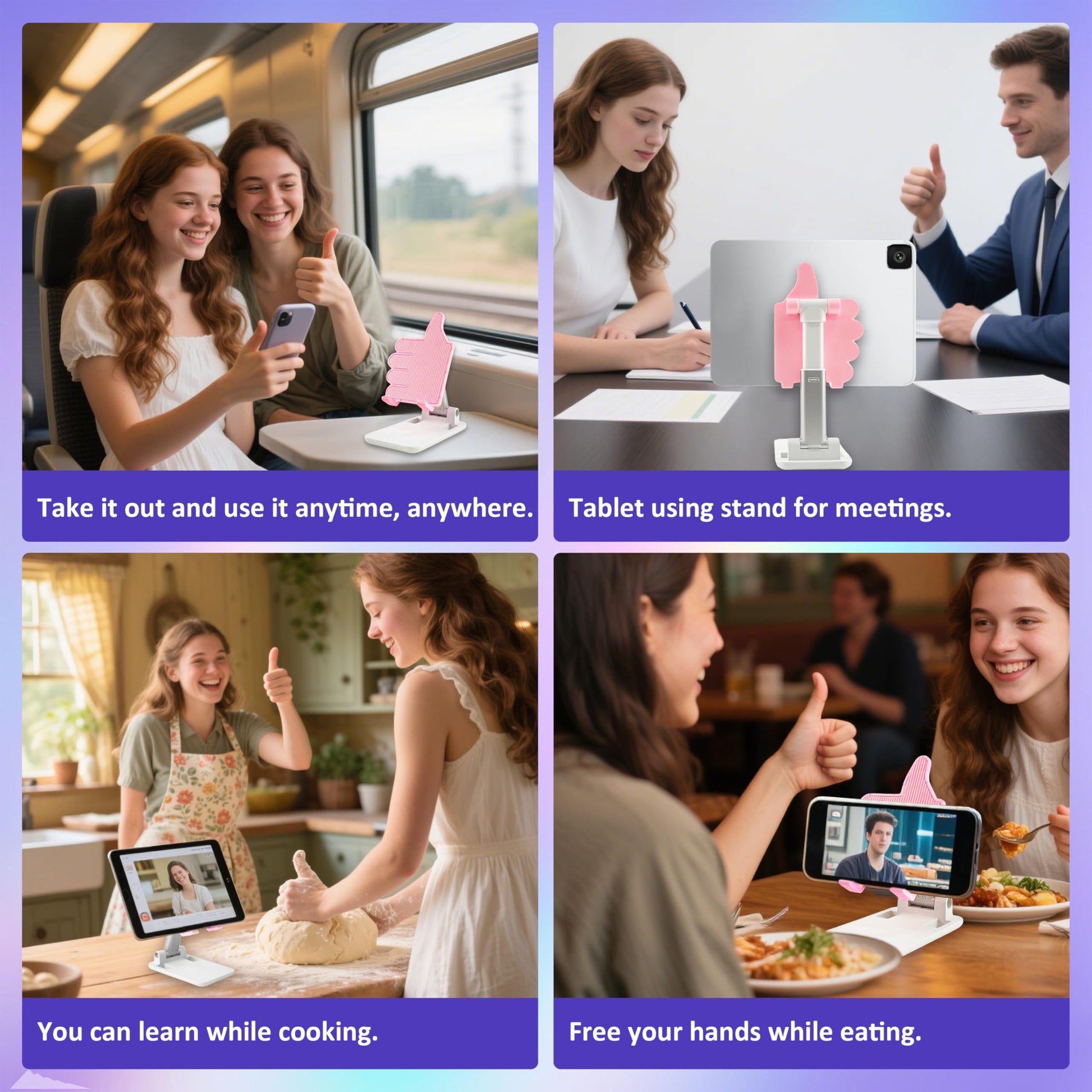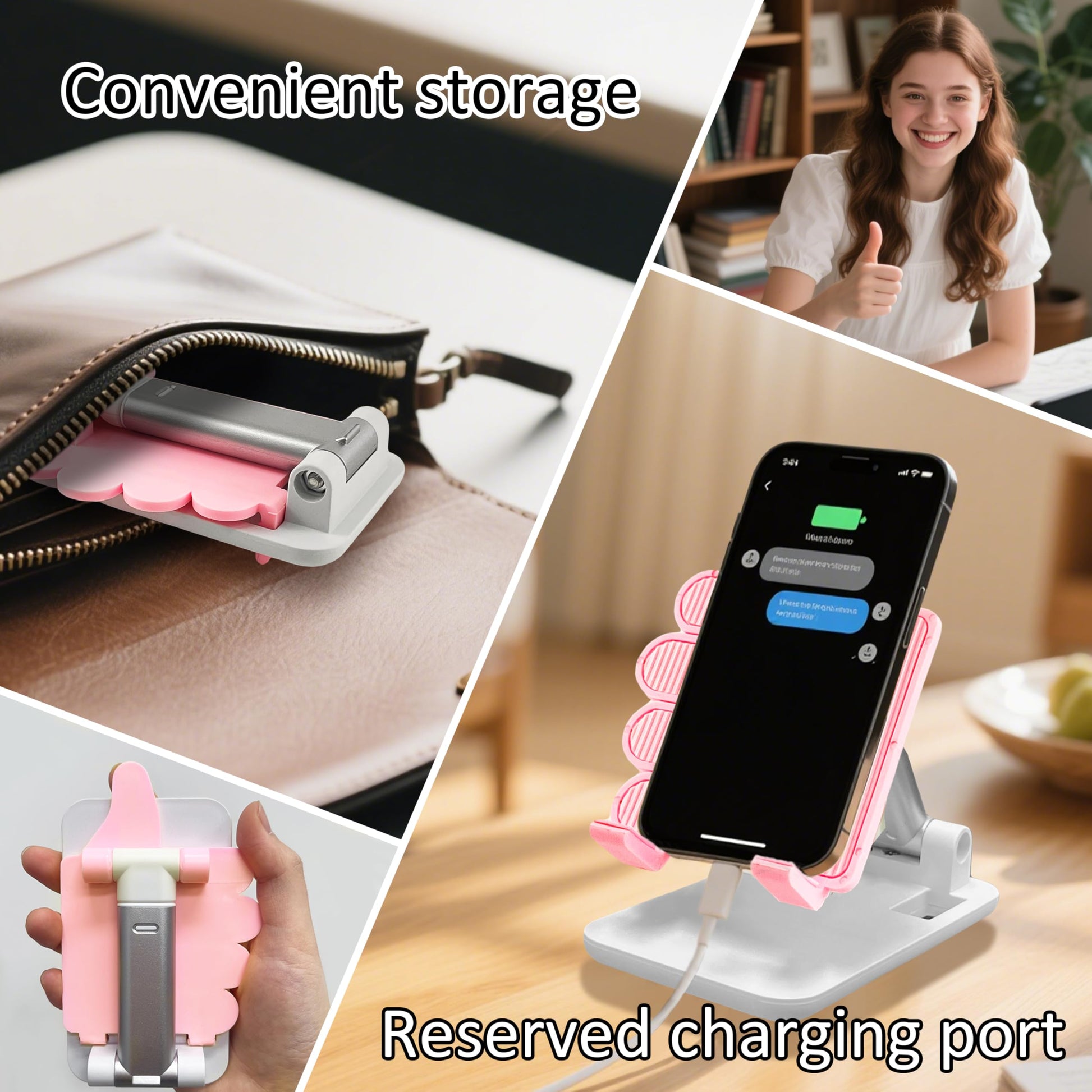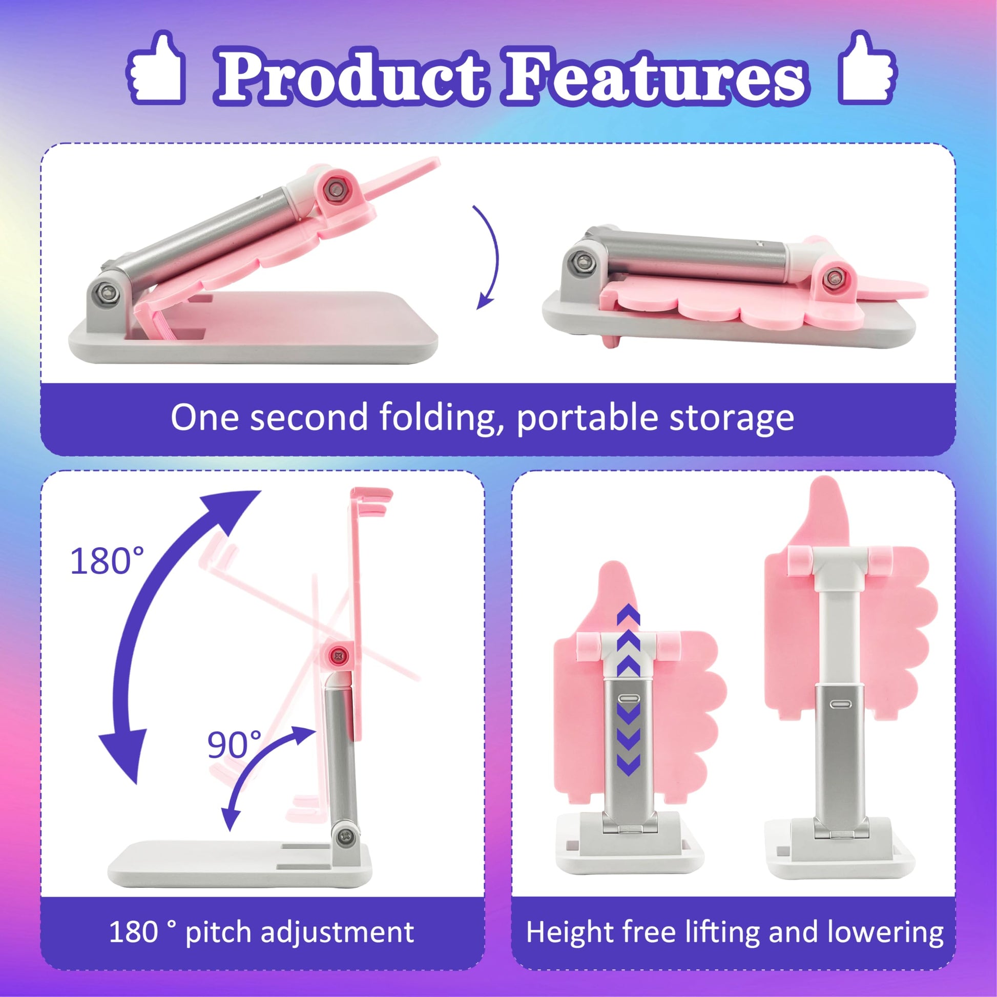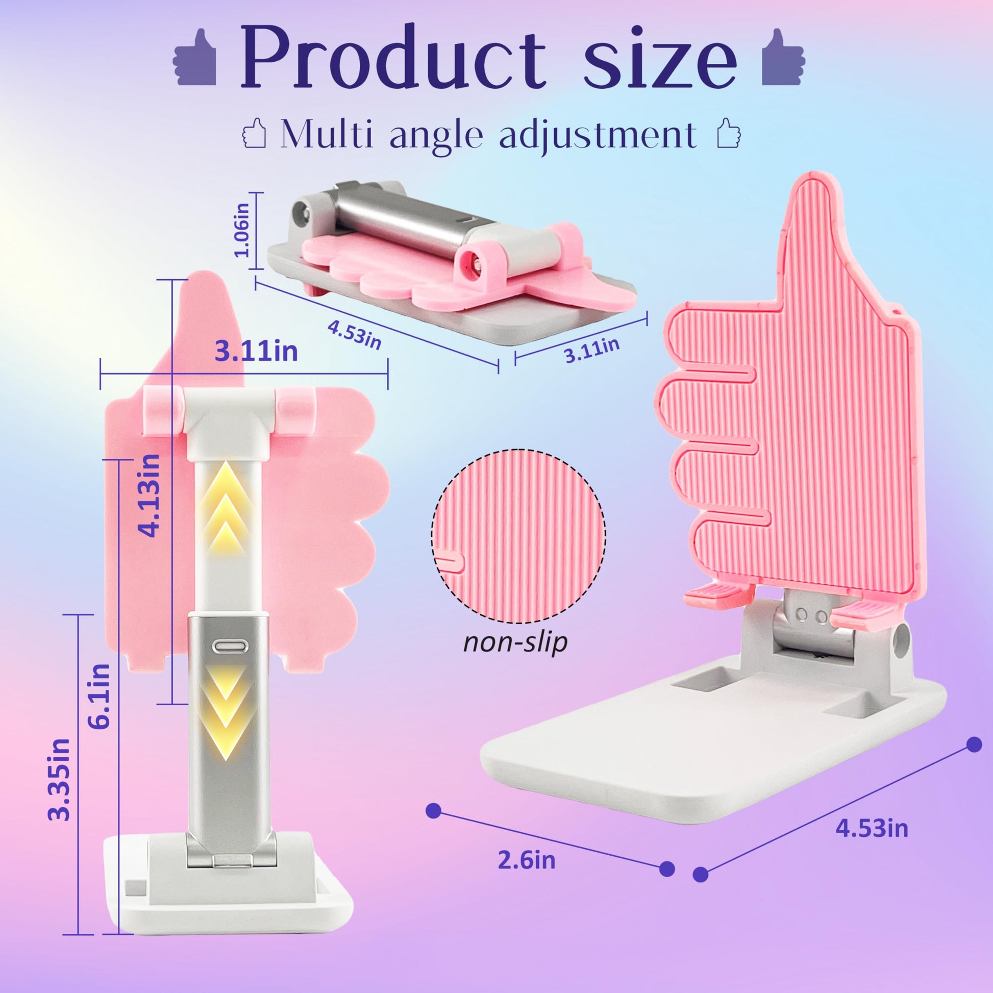 Yuibthr Foldable Cell Phone Stand Non-Slip,Thumbs Up Adjustable Phone Holder with Silicone,Portable Phone Stand for Desktop Compatible with All Mobile Phones (Pink)