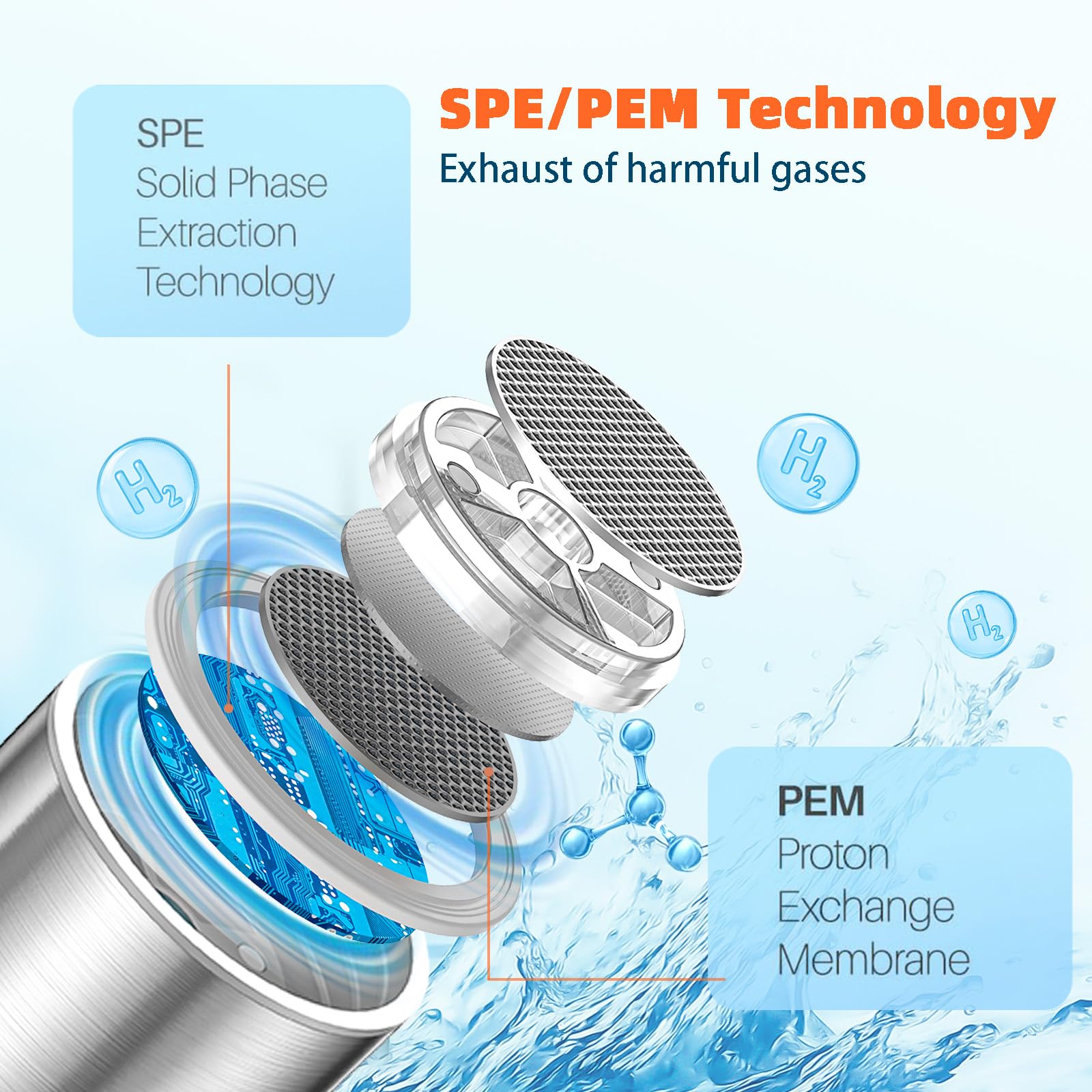 - 【Upgraded Hydrogen Water Bottle】 Unlike other hydrogen rich water bottle on the market, this upgraded version can electrolyze all types of water, including tap water, purified water and distilled water. It uses SPE and PEM technology with an ionizing membrane to generate up to 1500ppb of hydrogen ions in just 3 minutes. It converts ordinary drinking water into hydrogen-rich alkaline water, providing you with healthy drinking water
