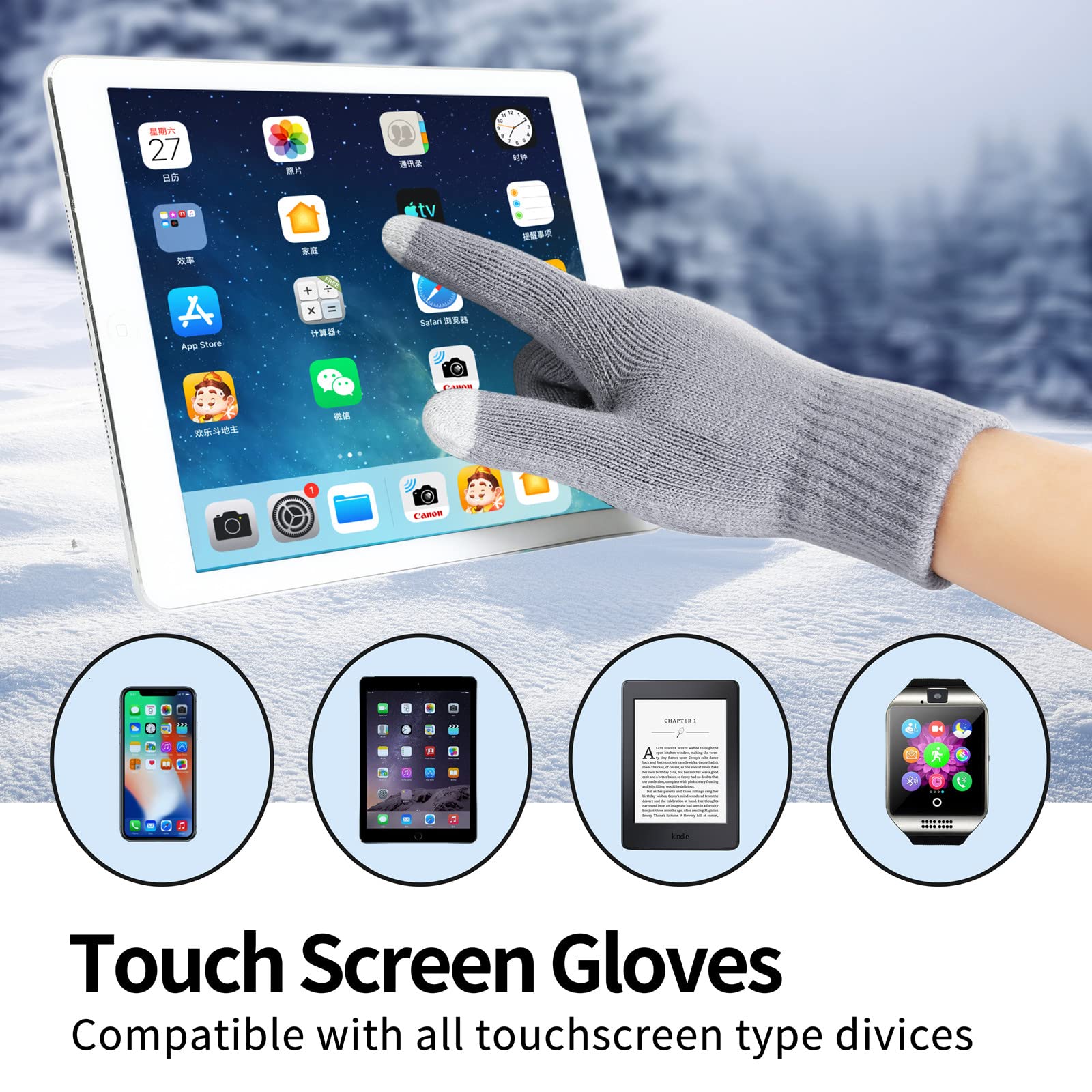 Yvechus 3 in 1 Winter Beanie Hat Scarf and Gloves Set Warm Knit Hat Thick Fleece Lined for Men Women (C style-Light Grey)