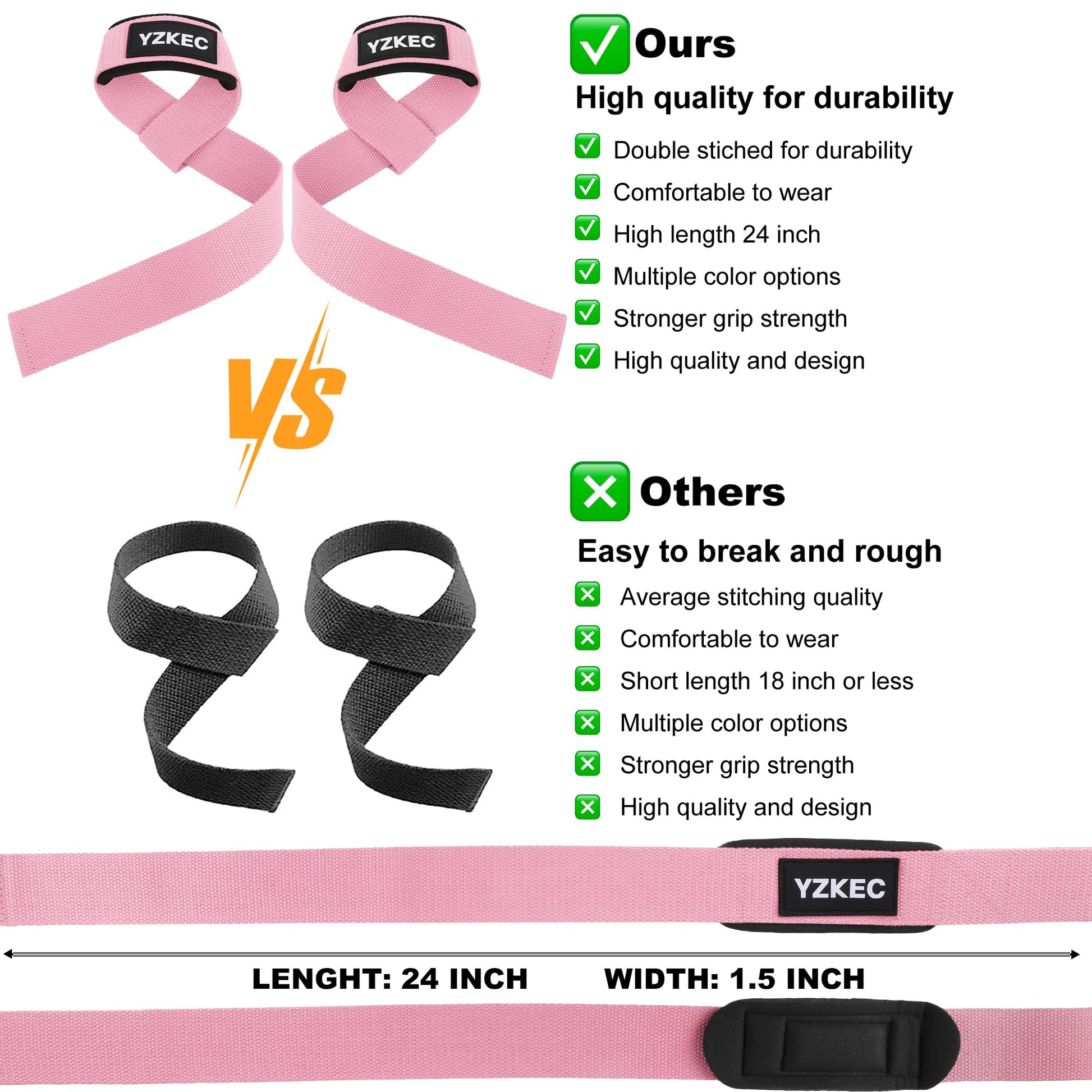 YZKEC 24" Cotton Weight Lifting Wrist Straps with Neoprene Cushioned Padded for Wrist Support and Protection,Weightlifting,Strength Training,Bodybuilding,Powerlifting,Dumbbell Workout,Men and Women