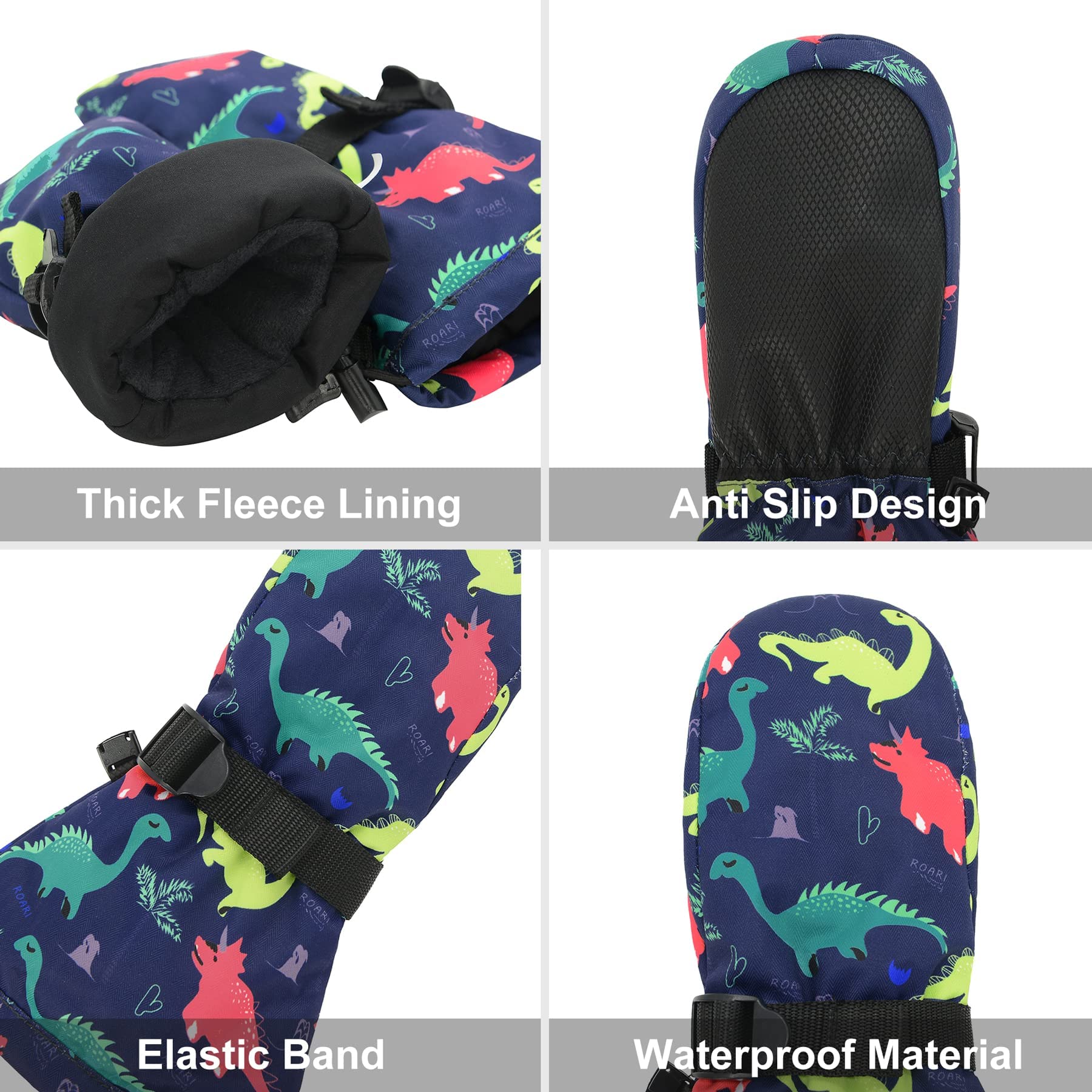 Zando Toddler Winter Snow Mittens for Kids Waterproof Ski Gloves Winter Kids Ski Mittens Waterproof Insulated Girls Boys Thick Sherpa Lined Long Cuff Snow Mittens for Kids Forest Fox fits 0-2 Years
