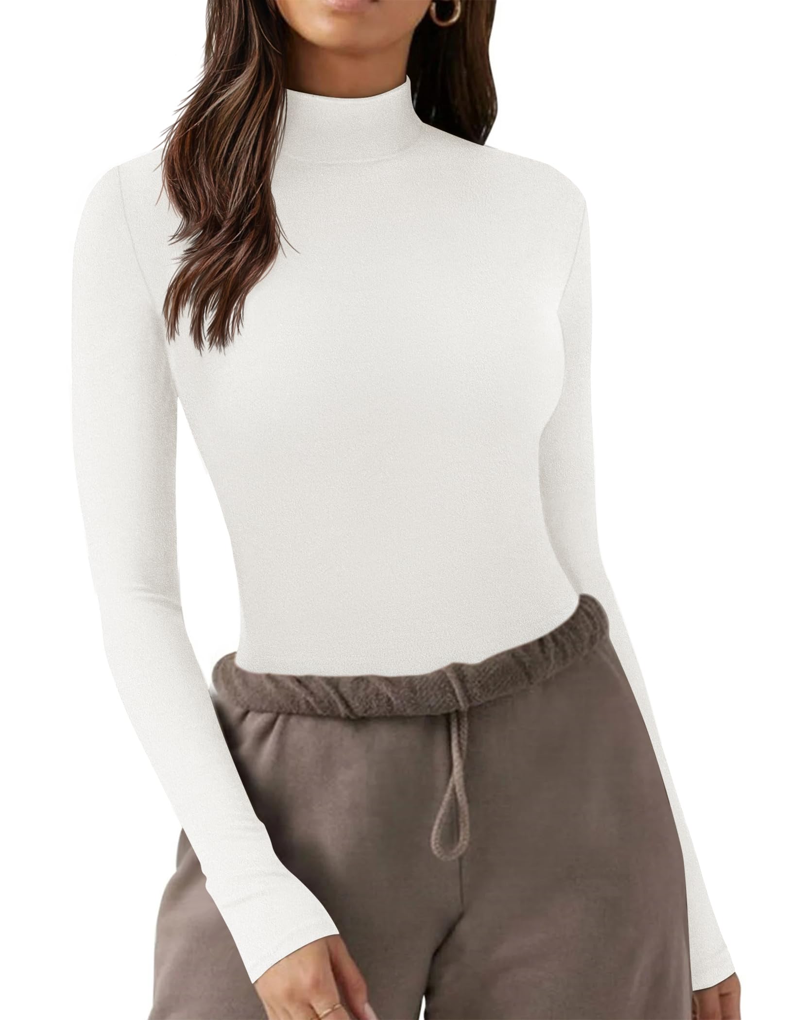 - Match: This mockneck top is incredibly versatile,wearing it on its own or layer it with other pieces. Long sleeve shirts pairs beautifully with jeans, leggings,jeans, joggers, skinny pants, trousers, skirt and smart-casual attire. When the weather cools down, it makes an excellent base layer under sweaters or cardigans.