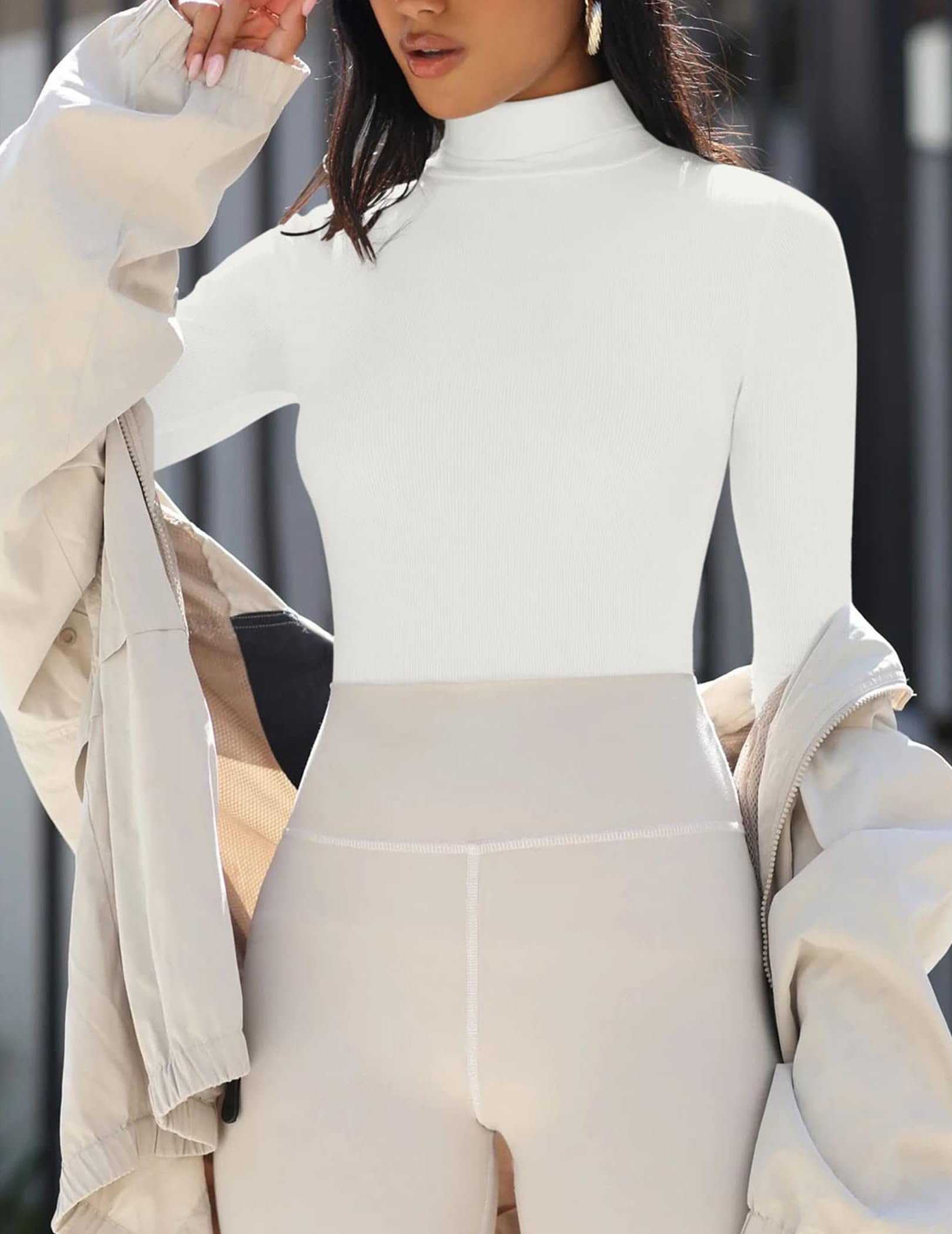 - Feature: mock turtleneck for women,Tight long sleeve shirts for women, mock neck tops turtleneck, slim fit thermal tops,fall crop tops, warm mockneck tshirt, thermal underwear shirts. The mock turtleneck looks elegant and glamorous, dressy and casual.The turtleneck design adds a touch of elegance and perfectly frames your neck.