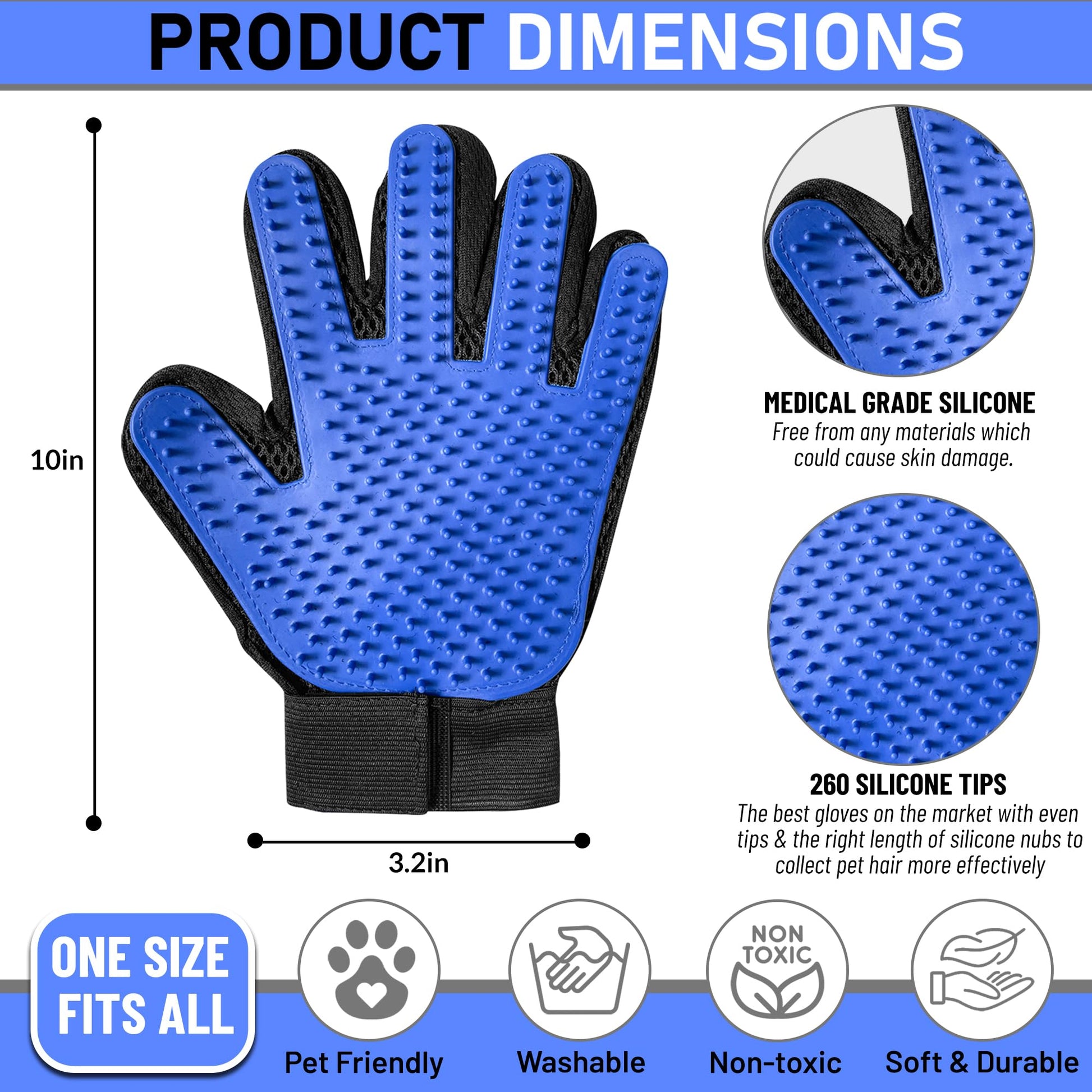 - UPGRADED VERSION: Our Pet Grooming Gloves With Premium Silicone Material, Pet Brush Glove More Than Any Other On The Market! The Flexible Tips Are Designed To Gently Detangle Fur & Dirt. Our Grooming Mitt Stimulates Your Pet's Skin, Pet Wipe Gloves Improving Circulation And Distributing Natural Oils For A Gorgeously Shiny Coat. The Soft Rubber Nubs Softly Massage Your Pet For Relaxing Spa-like Experience.