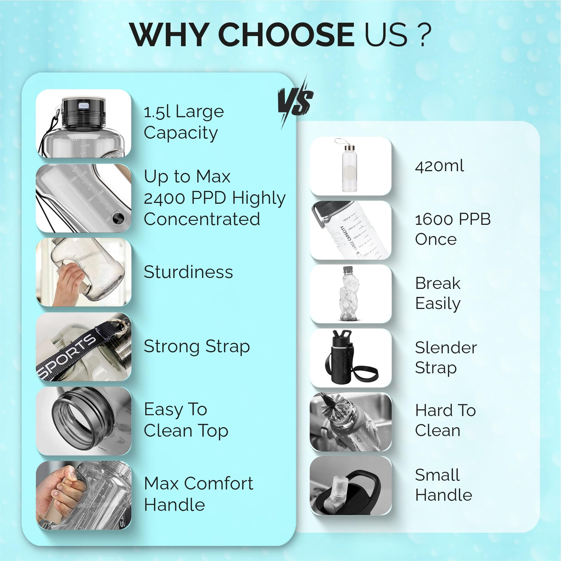 - 【1.5 L Size】Experience the convenience of an atmospheric water generator with this portable hydrogen ion bottle.