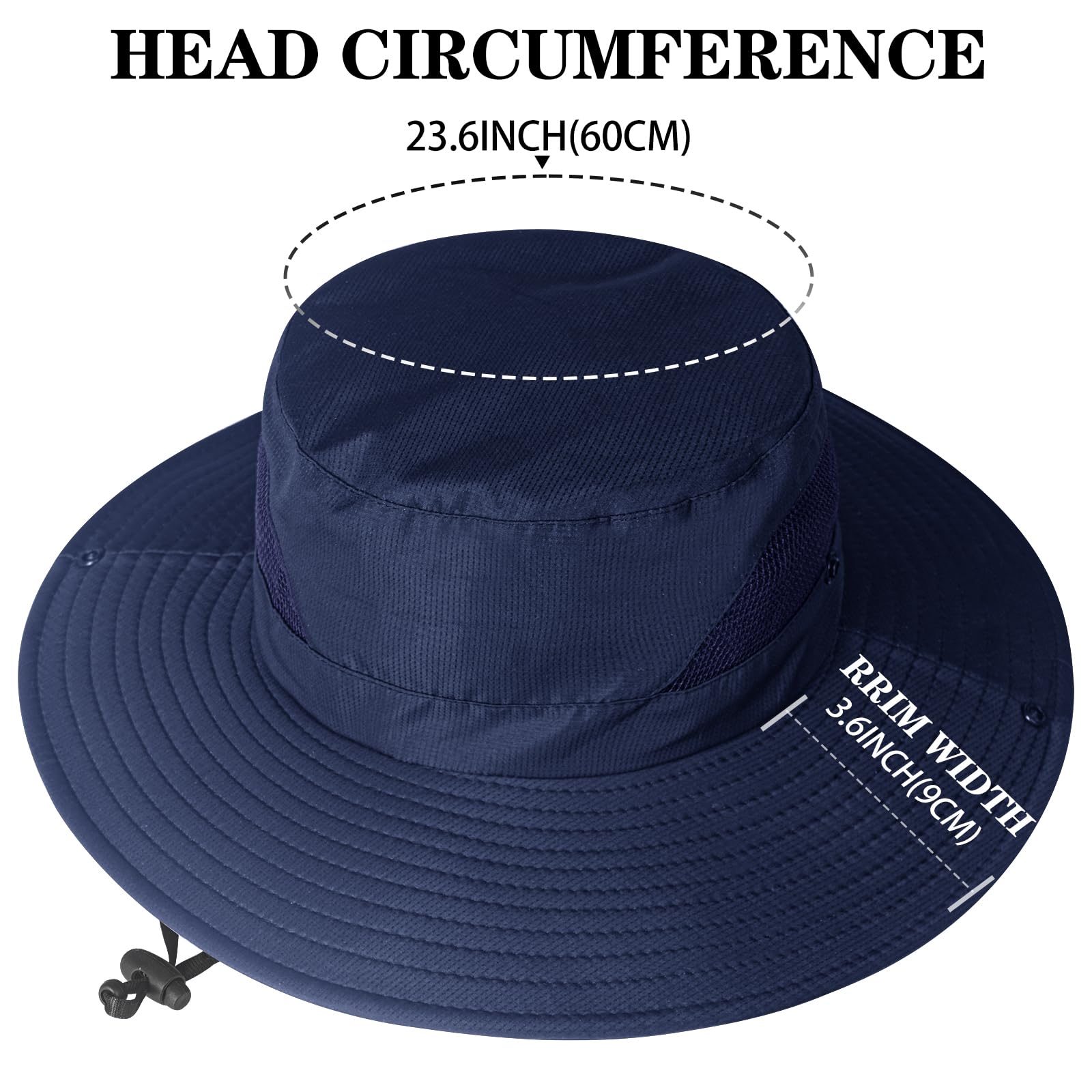 ZOORON Sun Hats for Men Women, Fishing Bucket Hats, Wide Brim UV Protection Waterproof Breathable Boonie Hats (1Pack-Navy)