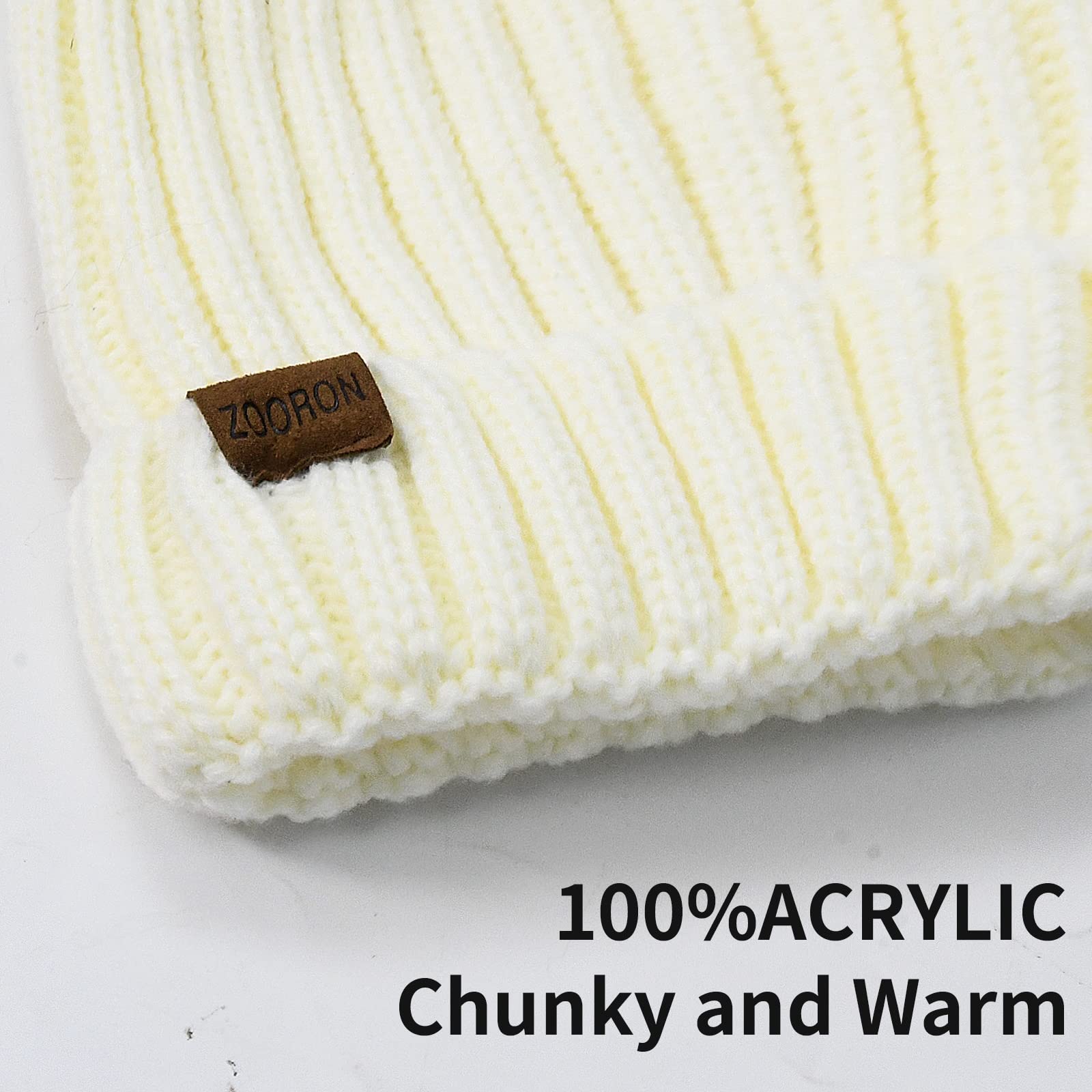 ZOORON Womens Winter Knitted Beanie Hat with Faux Fur Pom Beanie Warm Knit Skull Cap Beanie for Women White