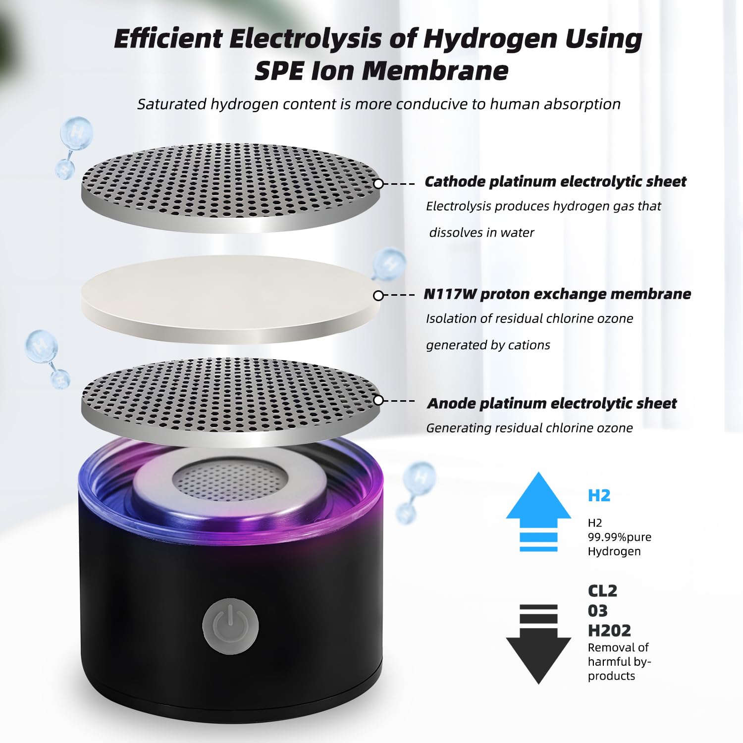 - 【Hydrogen Production Technology】Hydrogen Water Bottle adopts SPE technology, 6 minutes of rapid electrolysis of water, use ion membranes to separate and release H2 and O2, and turn ordinary drinking water into alkaline water rich in hydrogen ions. Effectively reducing oxidative stress, with high hydrogen concentration and good stability.