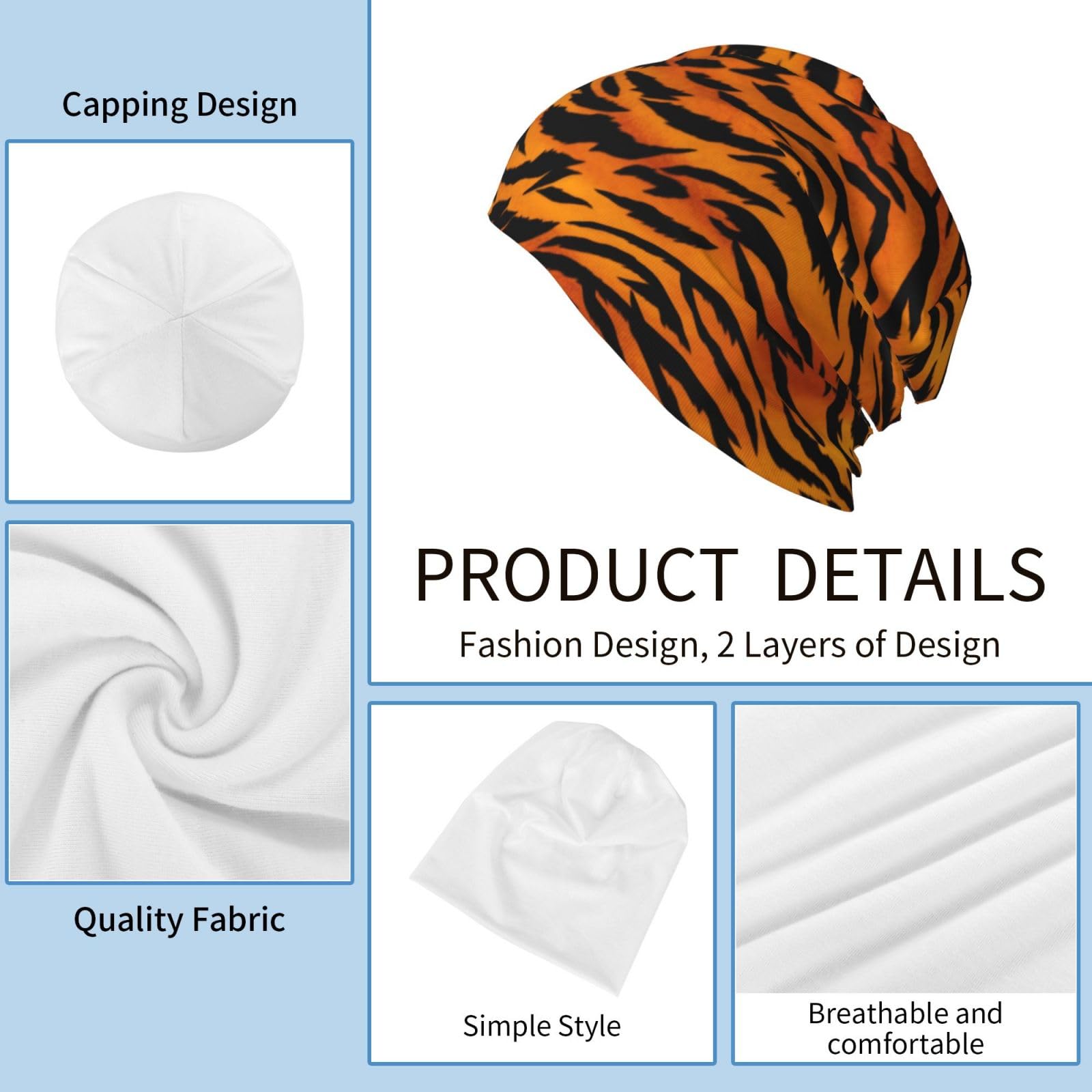 ZUHAOGO Animal Print Tiger Black Gold Skull Beanie Hats Slouchy Winter Warm Chemo Caps Stretch Hip-Hop Skull Cap Beanie Lightweight Sleep Cap Headwear Knit Beanies for Men Women